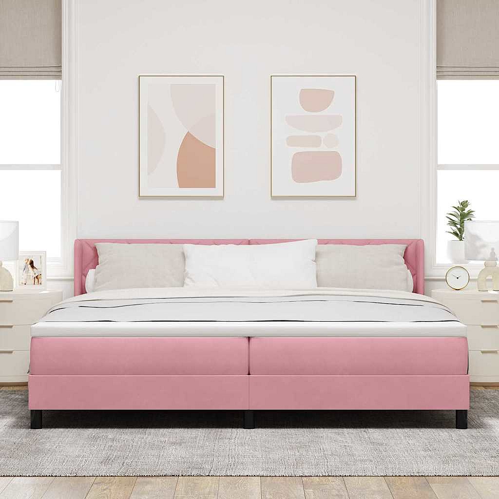 Cadre de lit avec matelas noir 100x200 cm en velours Rose