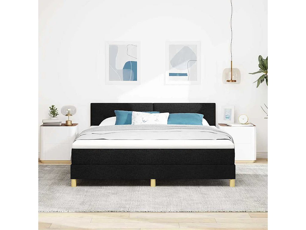 Cadre de lit avec matelas Noir 180 x 200 cm tissu
