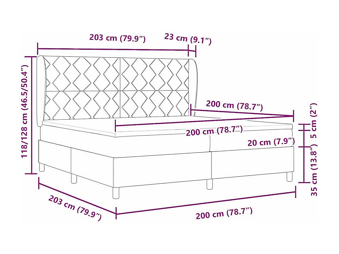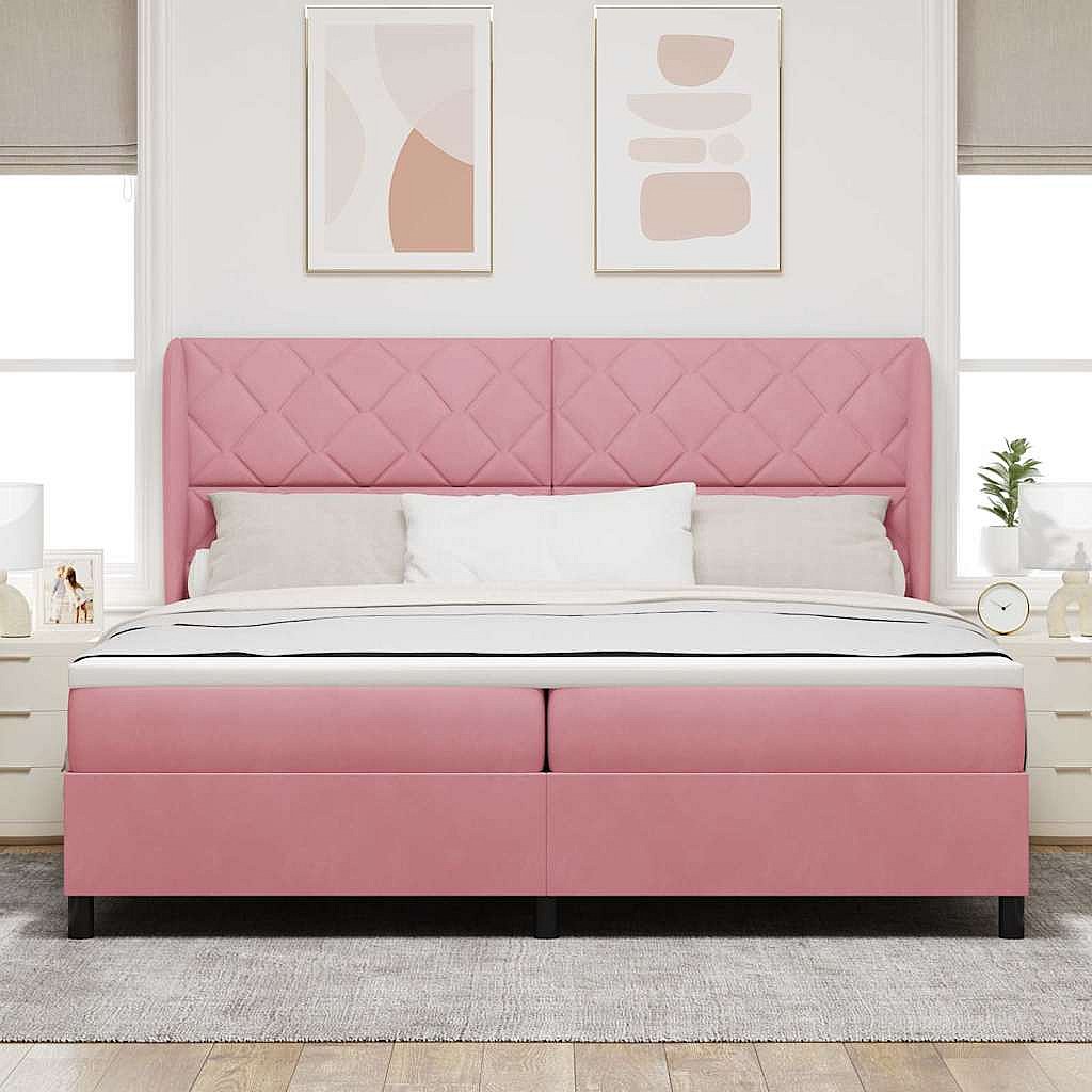 Cadre de lit avec matelas Rose 200 x 200 cm Velours