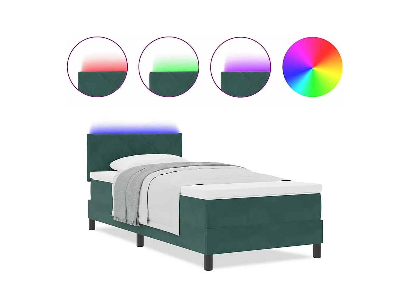 Cadre de lit avec matelas Vert foncé 90 x 200 cm Velours