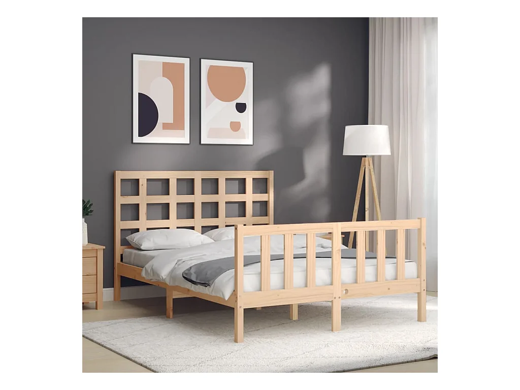 Cadre de lit avec tête de lit 120x200 bois massif