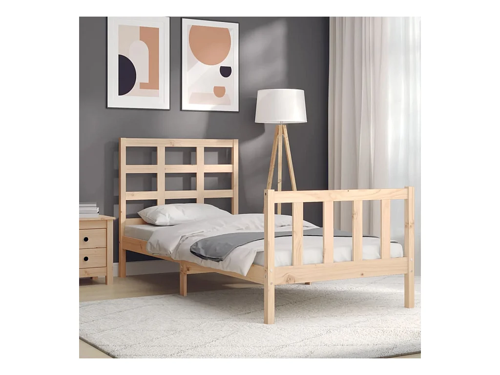 Cadre de lit avec tête de lit 90x190 cm bois massif