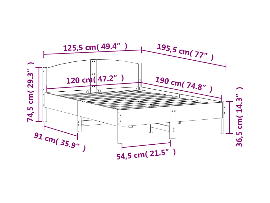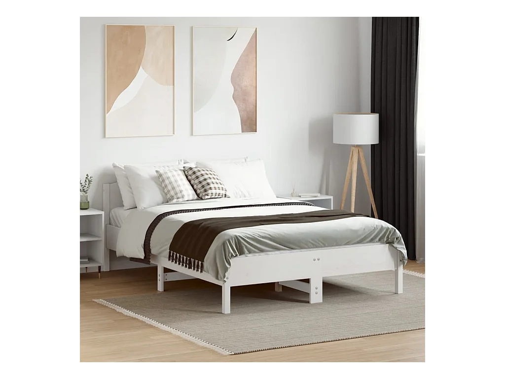 Cadre de lit avec tête de lit blanc 120x190 bois pin massif