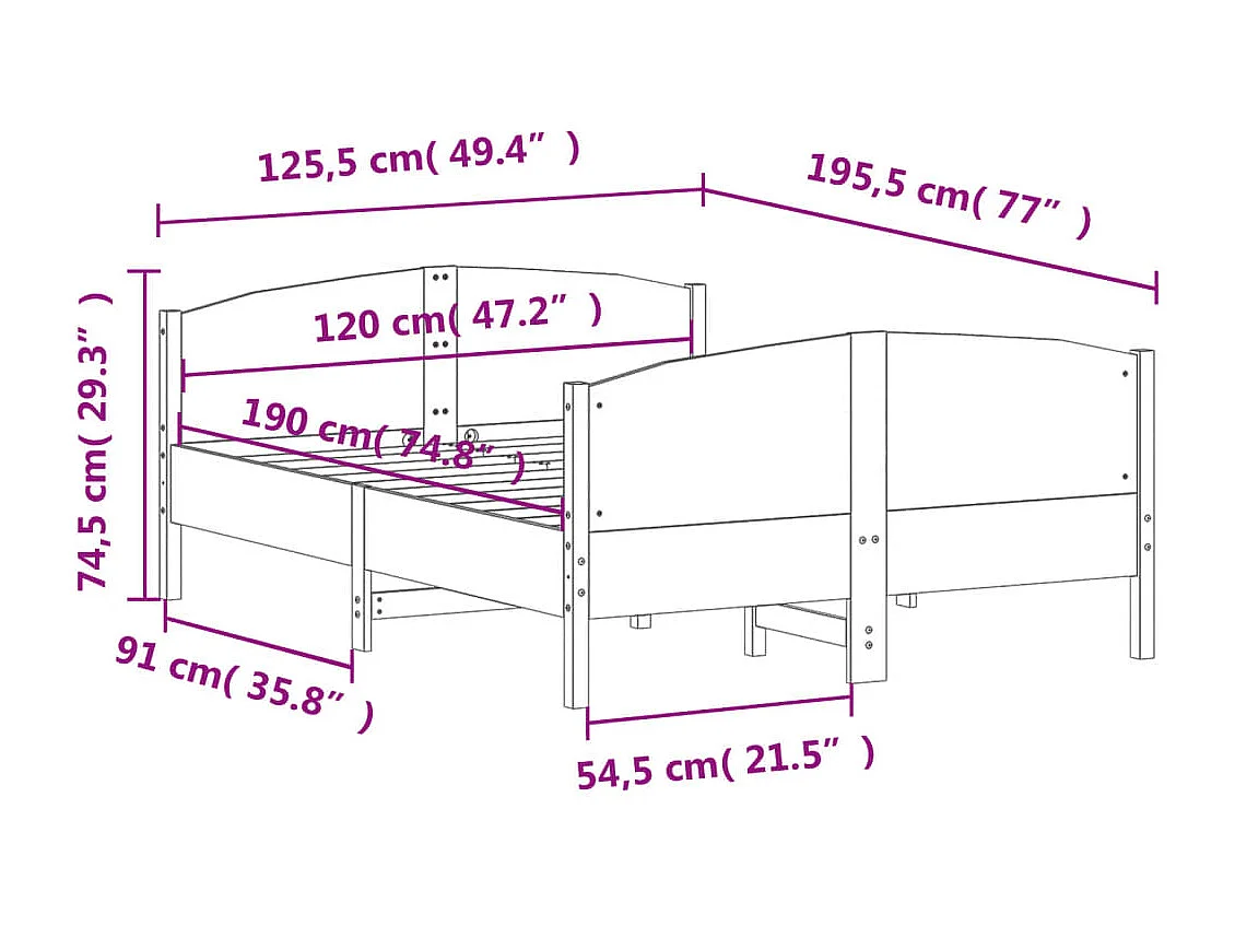 Cadre de lit avec tête de lit blanc 120x190 bois pin massif