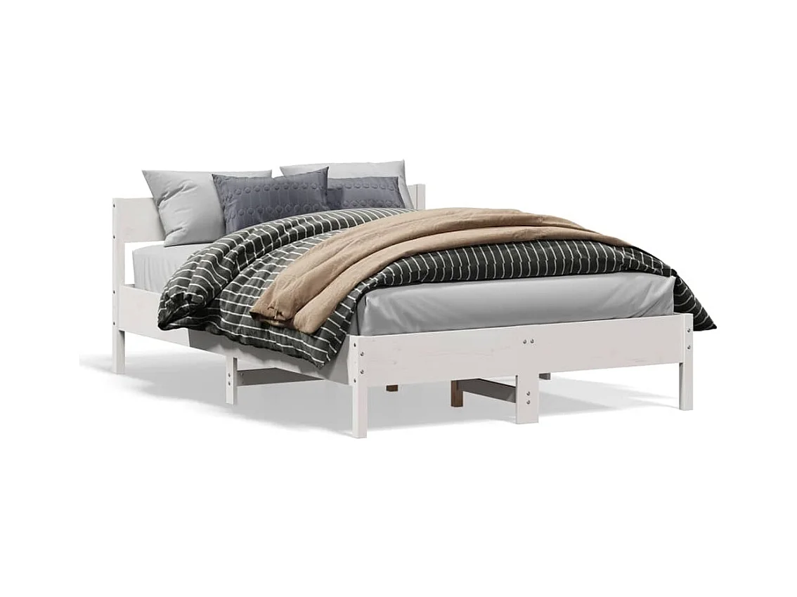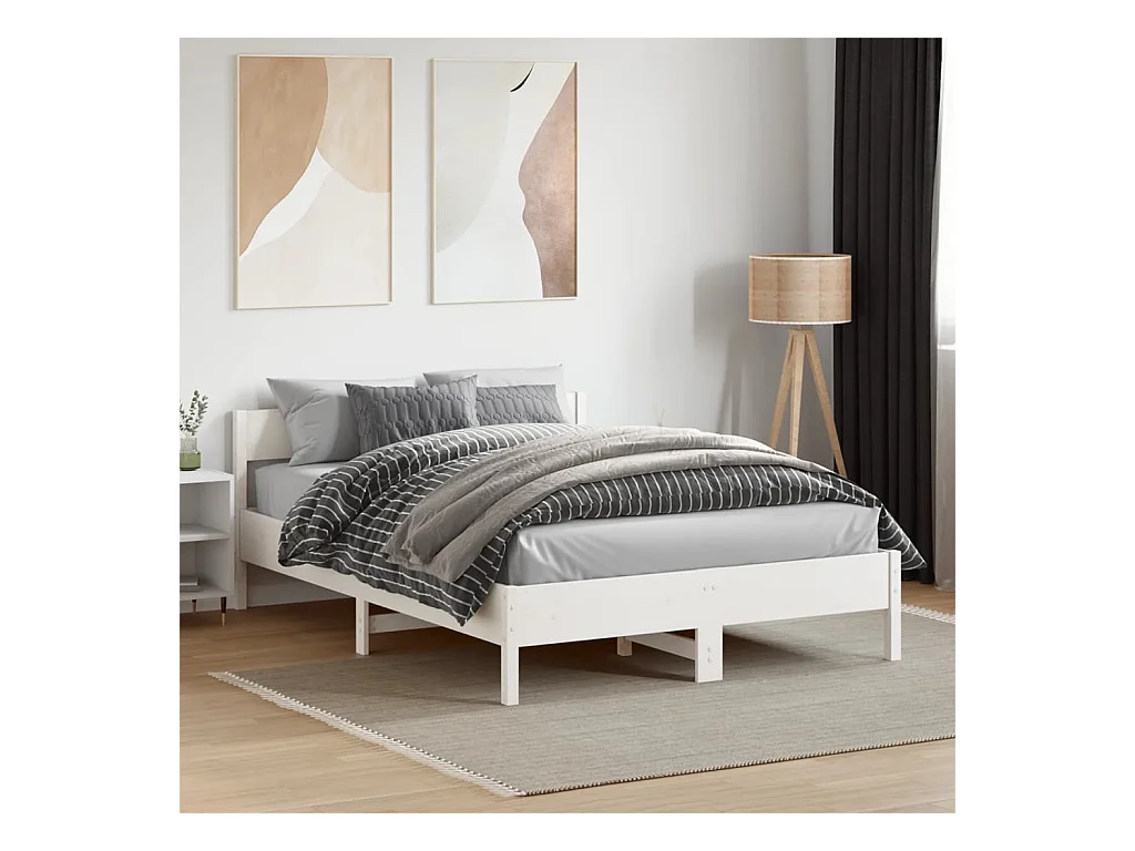 Cadre de lit avec tête de lit blanc 120x190 bois pin massif