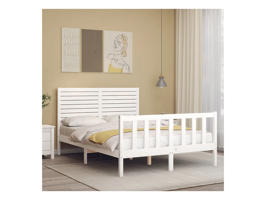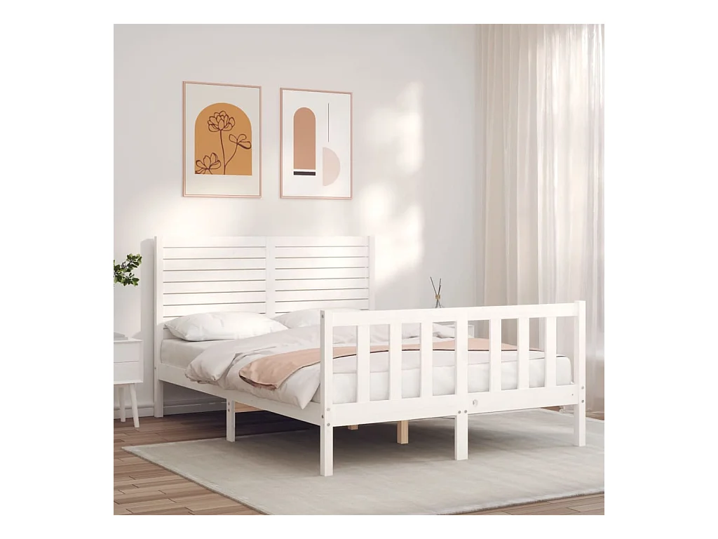 Cadre de lit avec tête de lit blanc 120x200 bois massif
