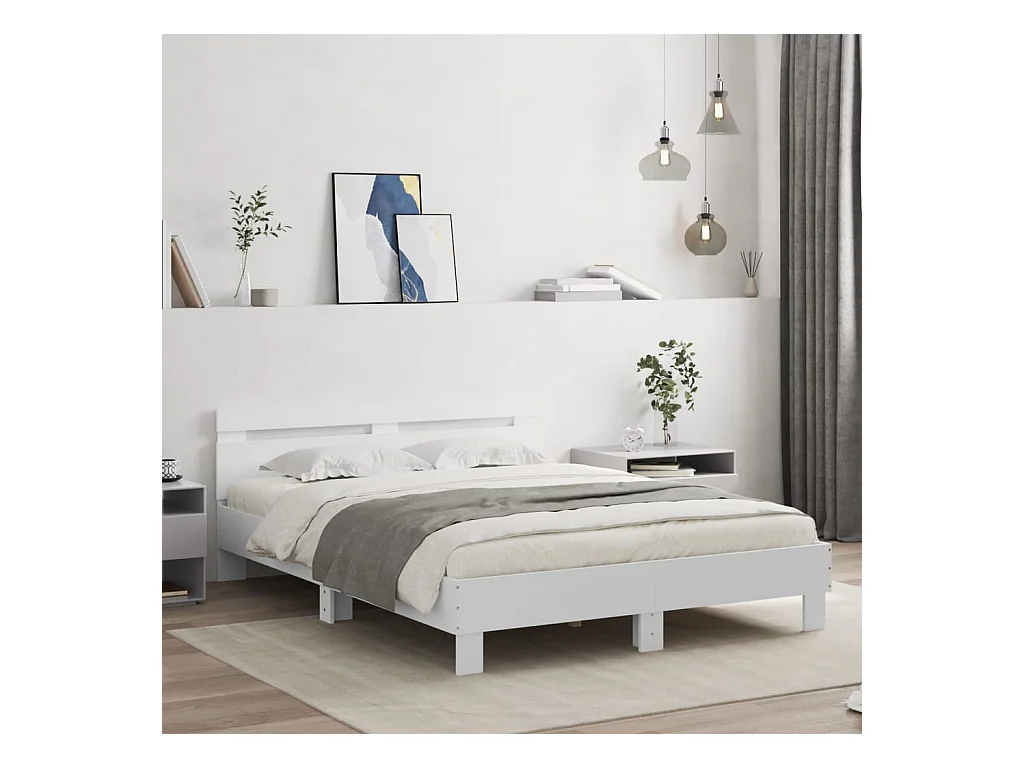 Cadre de lit avec tête de lit blanc 140x190 bois d'ingénierie