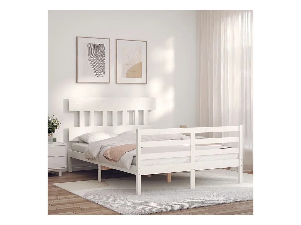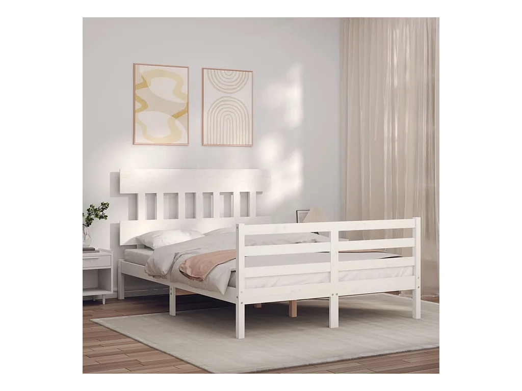 Cadre de lit avec tête de lit blanc 140x190 bois massif