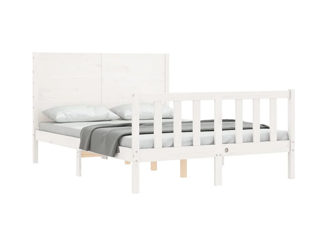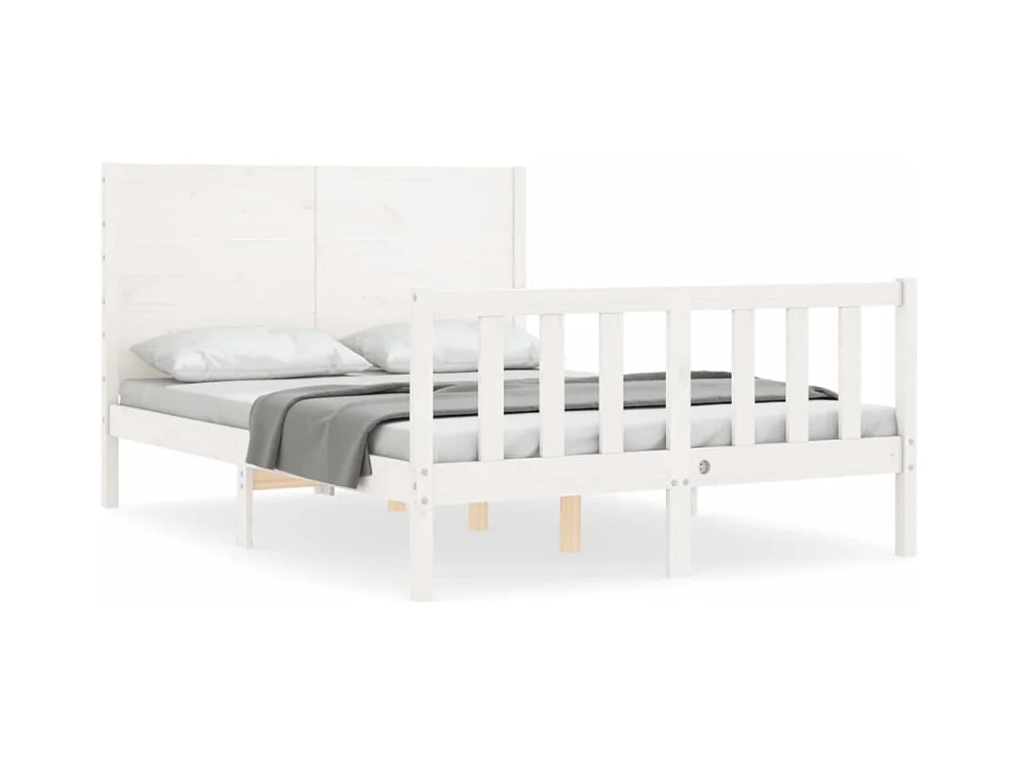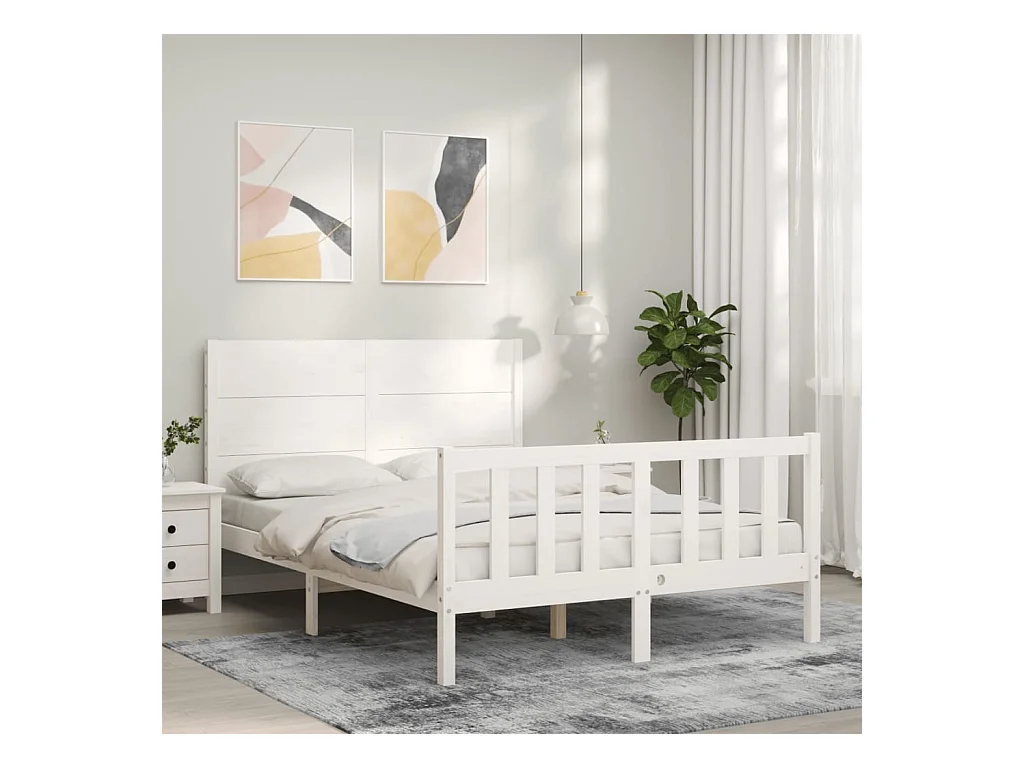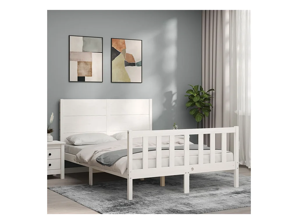 Cadre de lit avec tête de lit blanc 140x200 bois massif