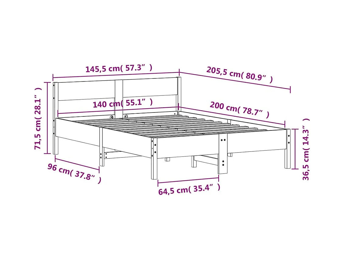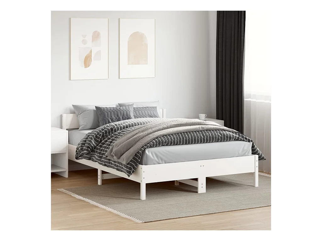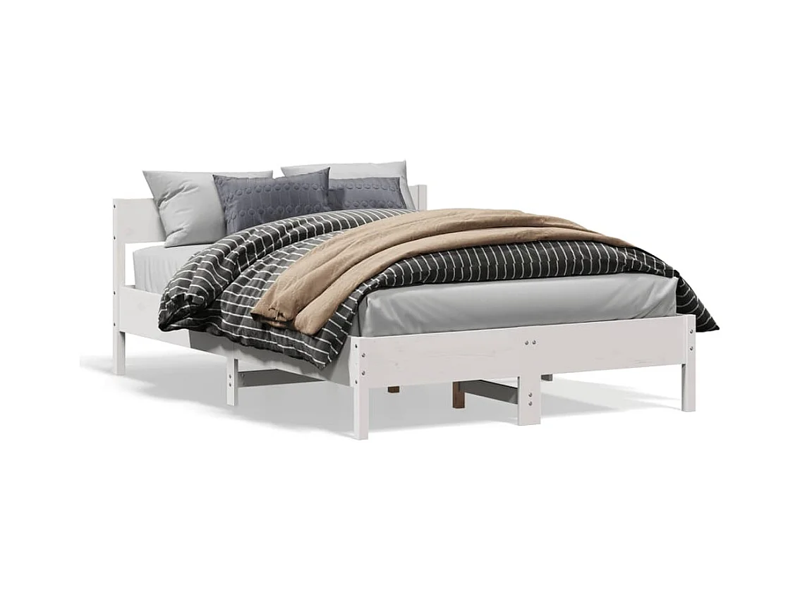Cadre de lit avec tête de lit blanc 140x200 bois pin massif