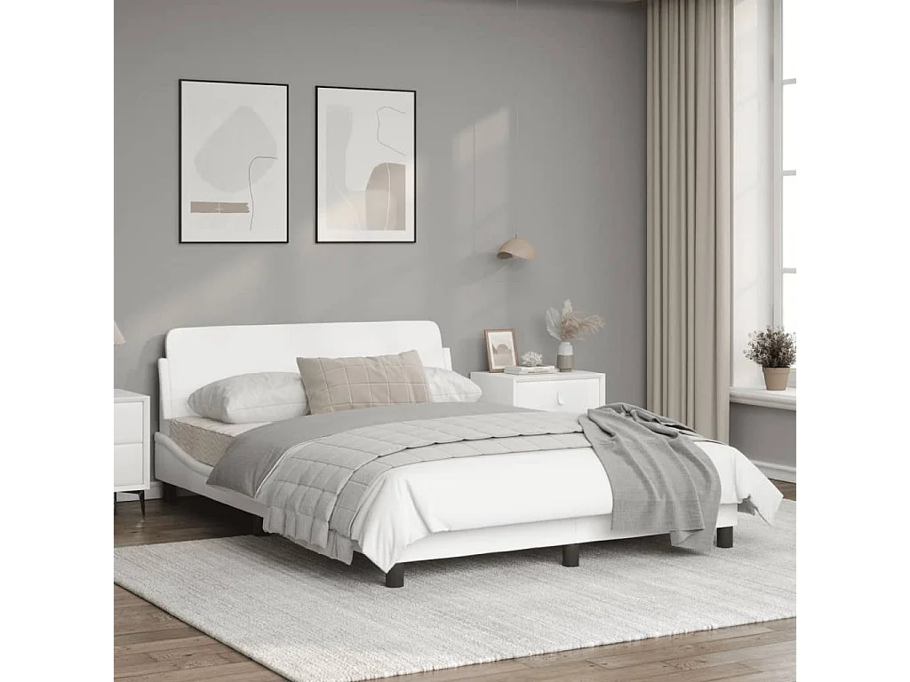 Cadre de lit avec tête de lit Blanc 140x200 Similicuir
