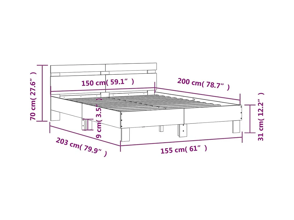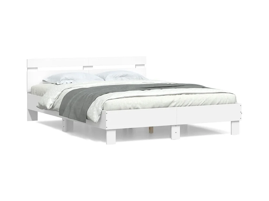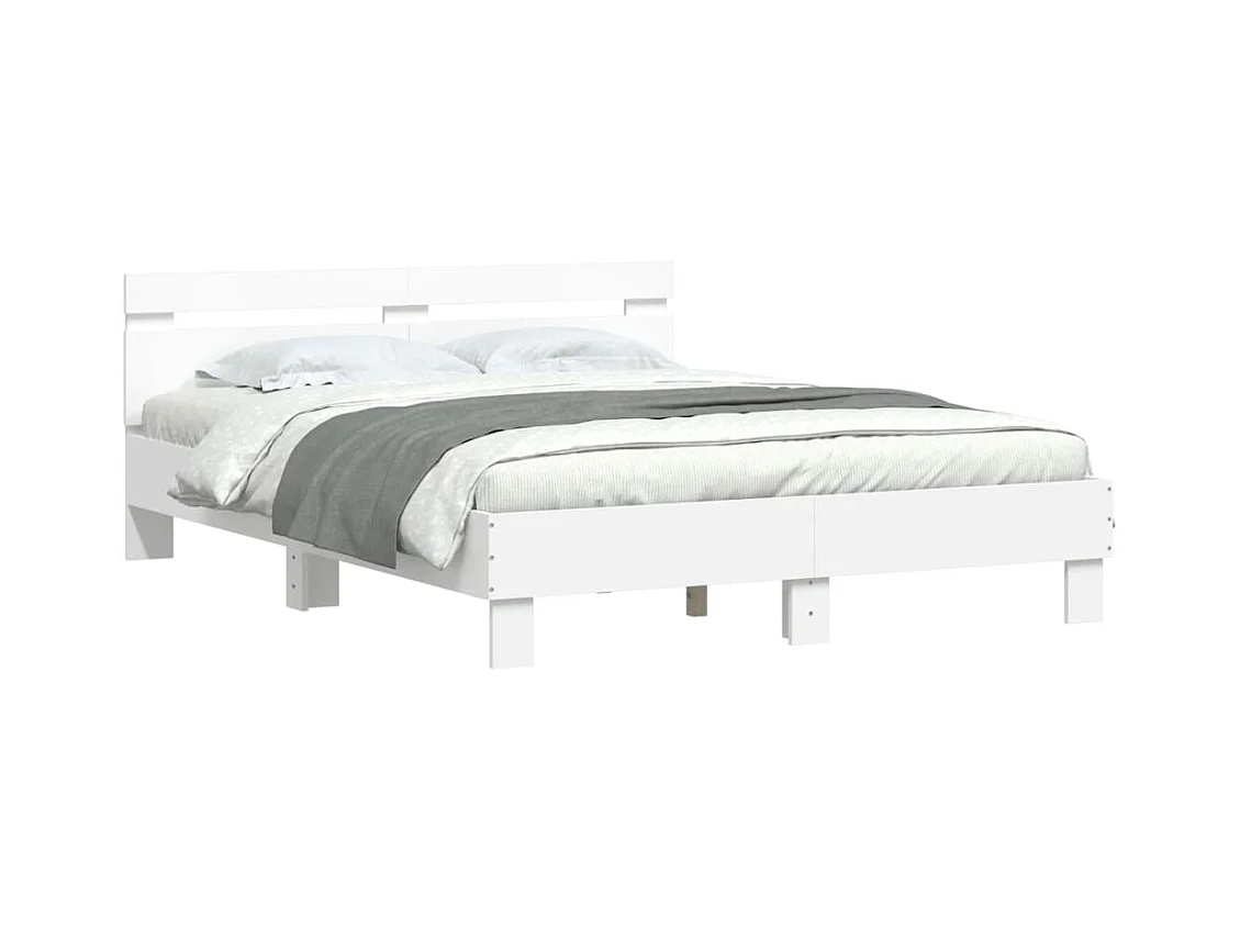 Cadre de lit avec tête de lit blanc 150x200 bois d'ingénierie