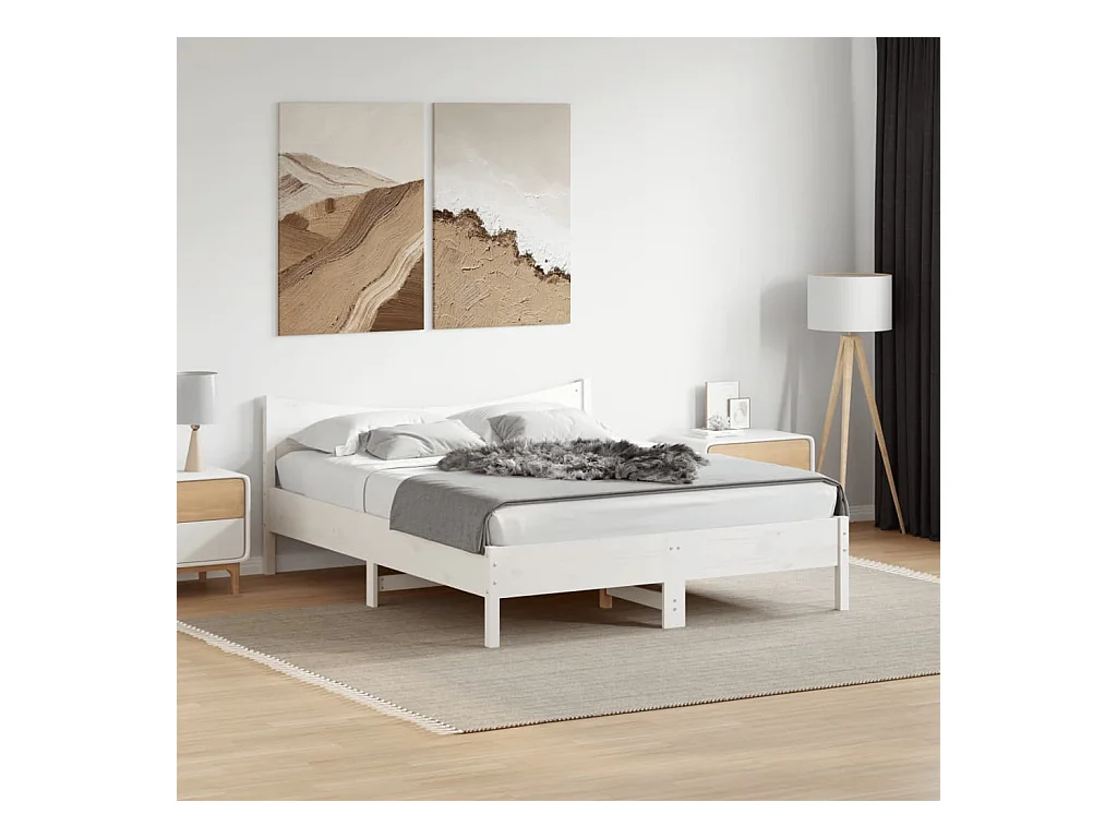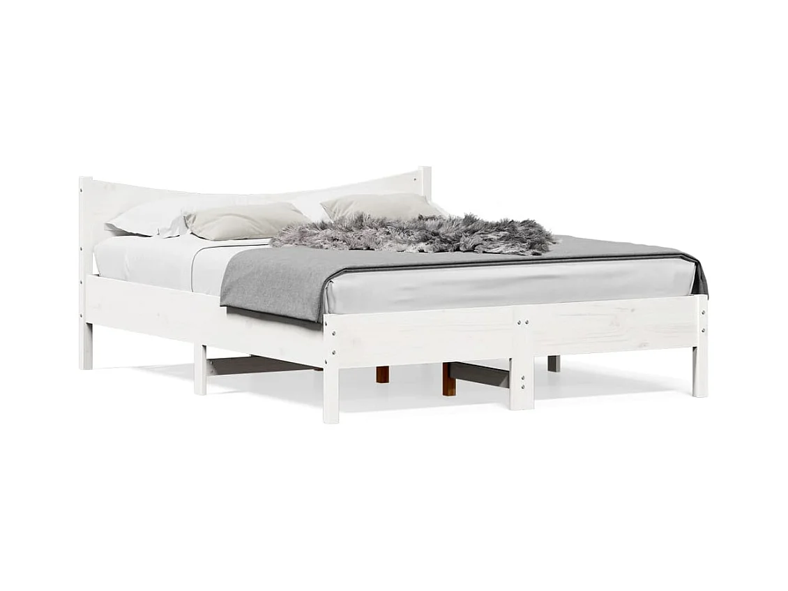 Cadre de lit avec tête de lit blanc 150x200 bois pin massif