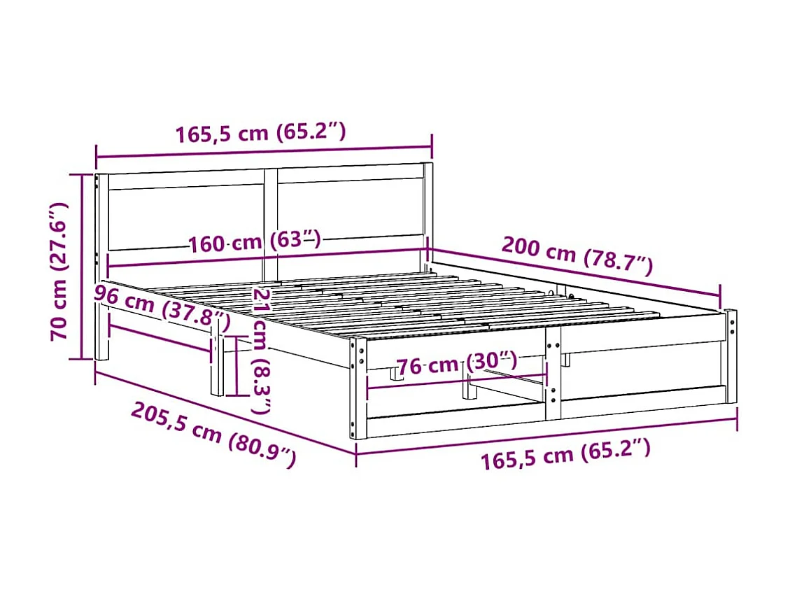 Cadre de lit avec tête de lit Blanc 160 x 200 cm Pin massif