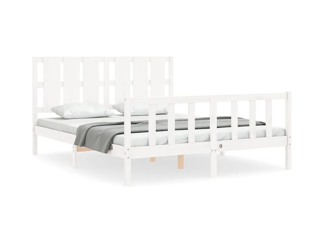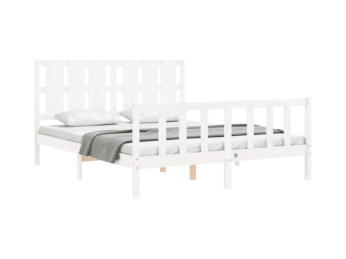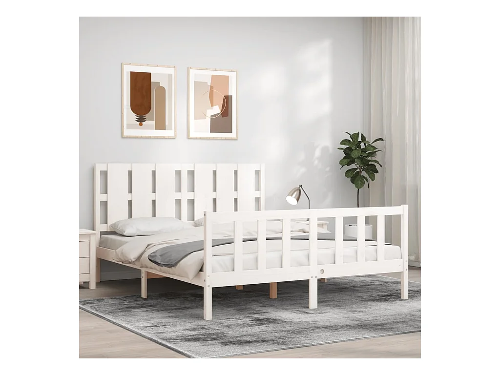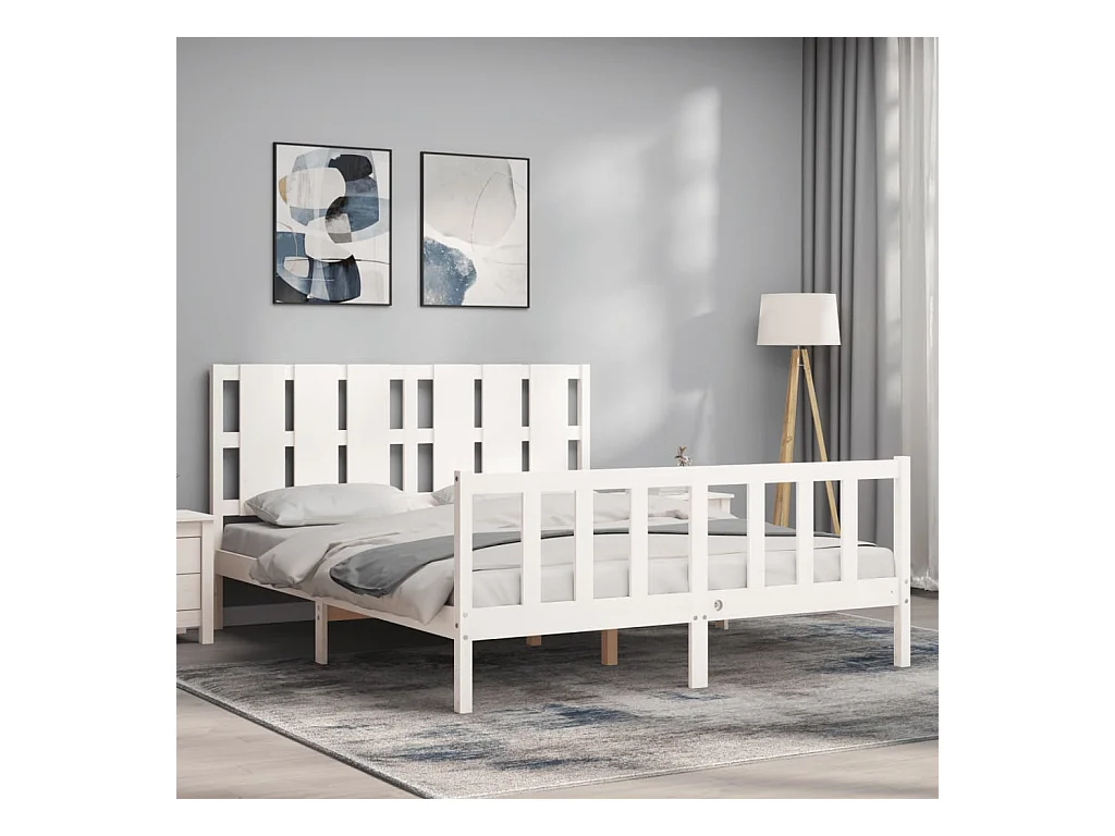 Cadre de lit avec tête de lit blanc 160x200 bois massif