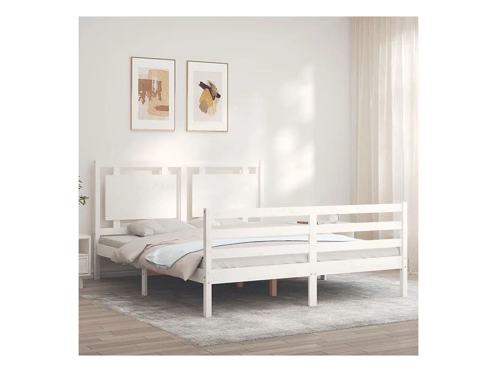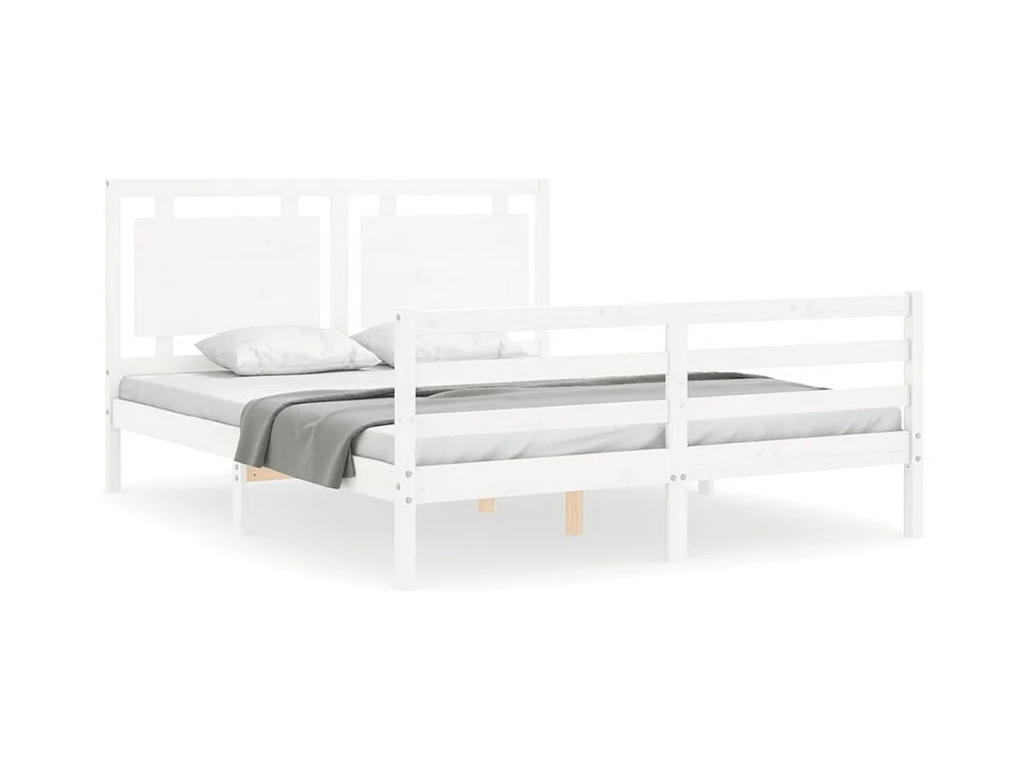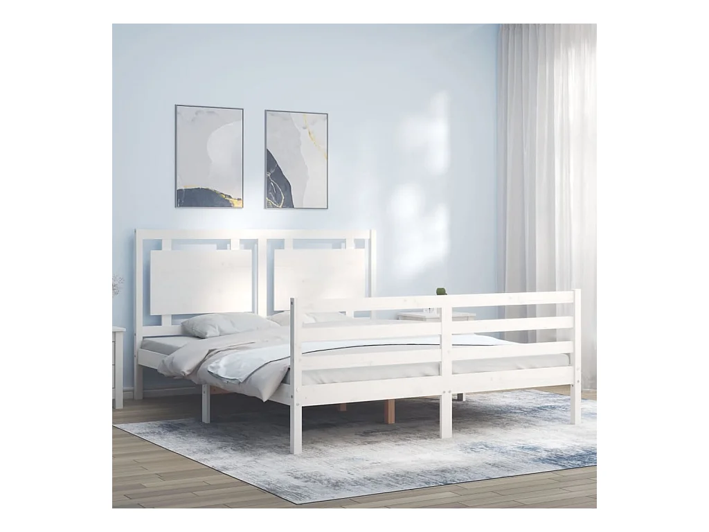 Cadre de lit avec tête de lit blanc 160x200 bois massif