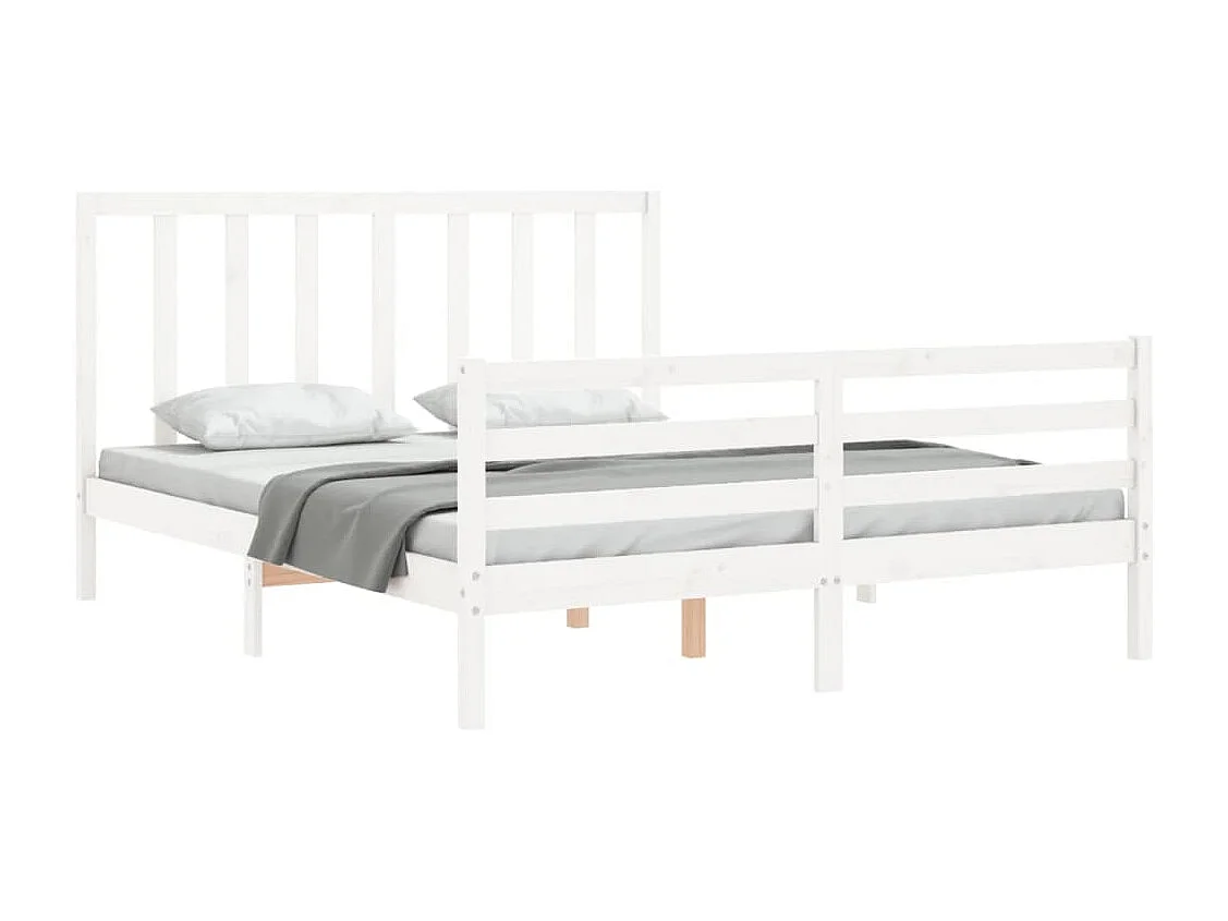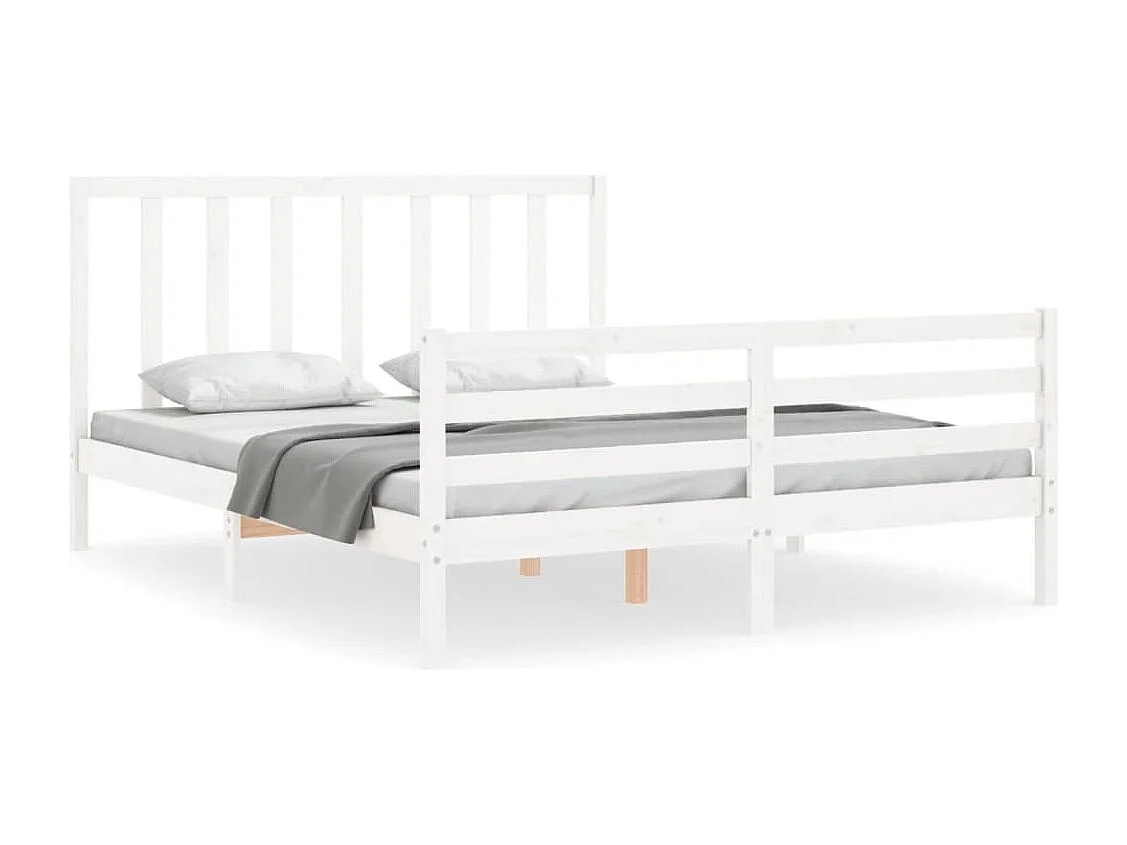 Cadre de lit avec tête de lit blanc 160x200 bois massif