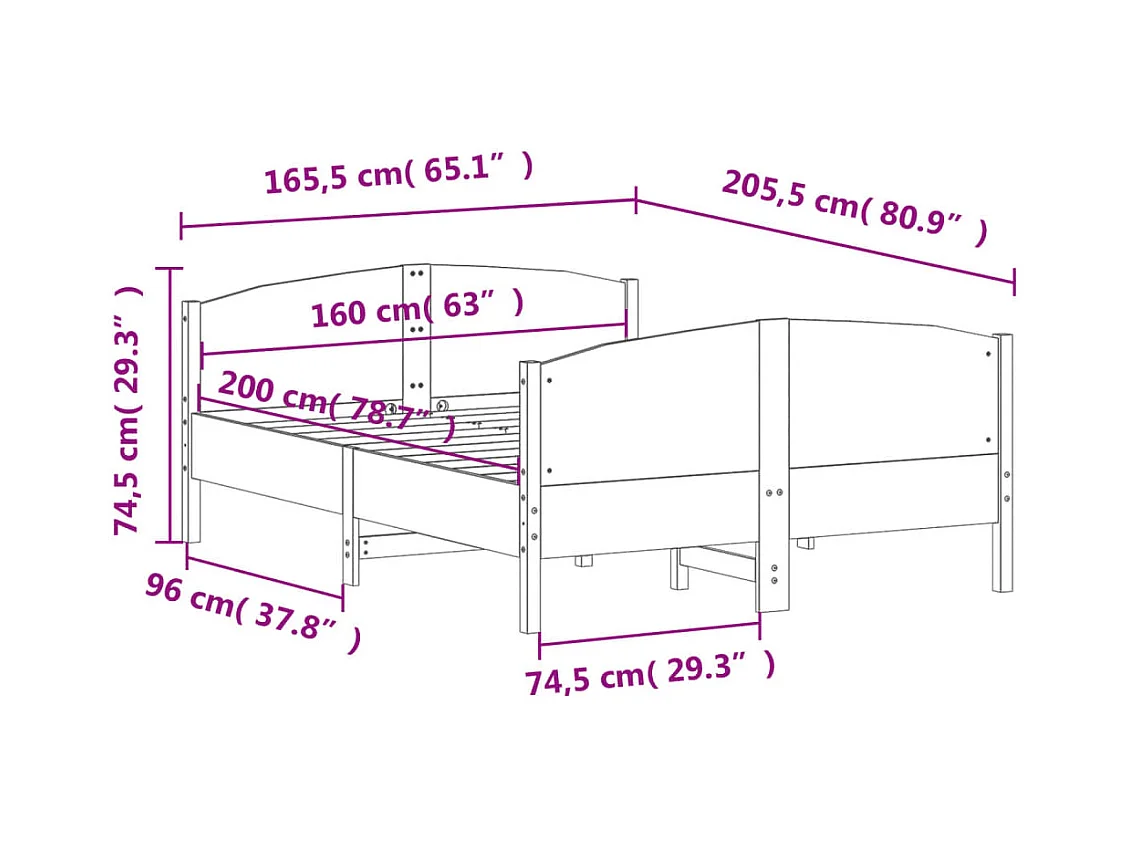 Cadre de lit avec tête de lit blanc 160x200 bois pin massif