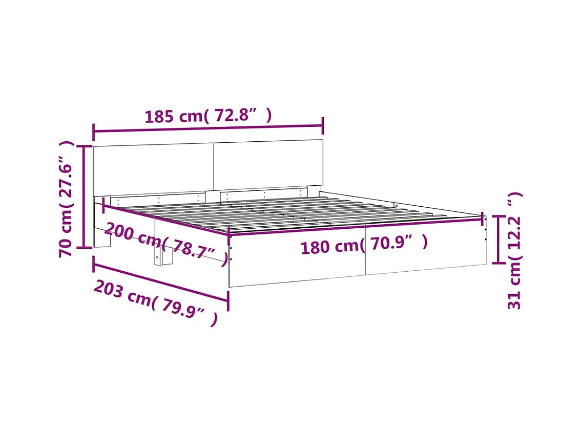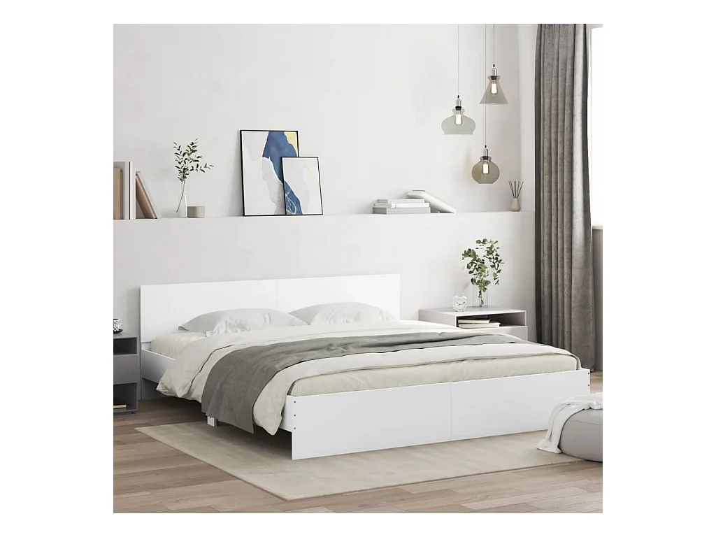 Cadre de lit avec tête de lit blanc 180x200