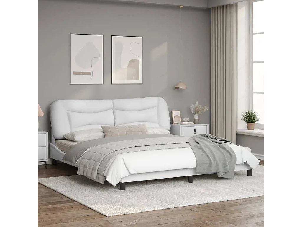 Cadre de lit avec tête de lit Blanc 180x200 Similicuir