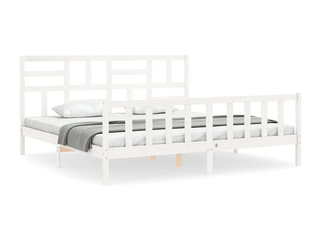 Cadre de lit avec tête de lit blanc 200x200 bois massif