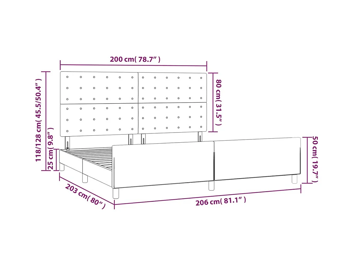 Cadre de lit sans matelas blanc 200x200 cm similicuir