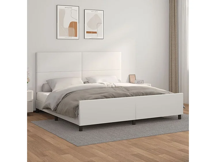 Cadre de lit avec tête de lit Blanc 200x200 Similicuir