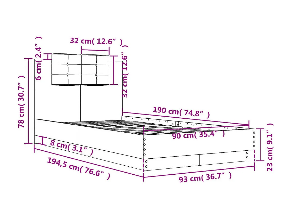 Cadre de lit avec tête de lit blanc 90x190 bois d'ingénierie