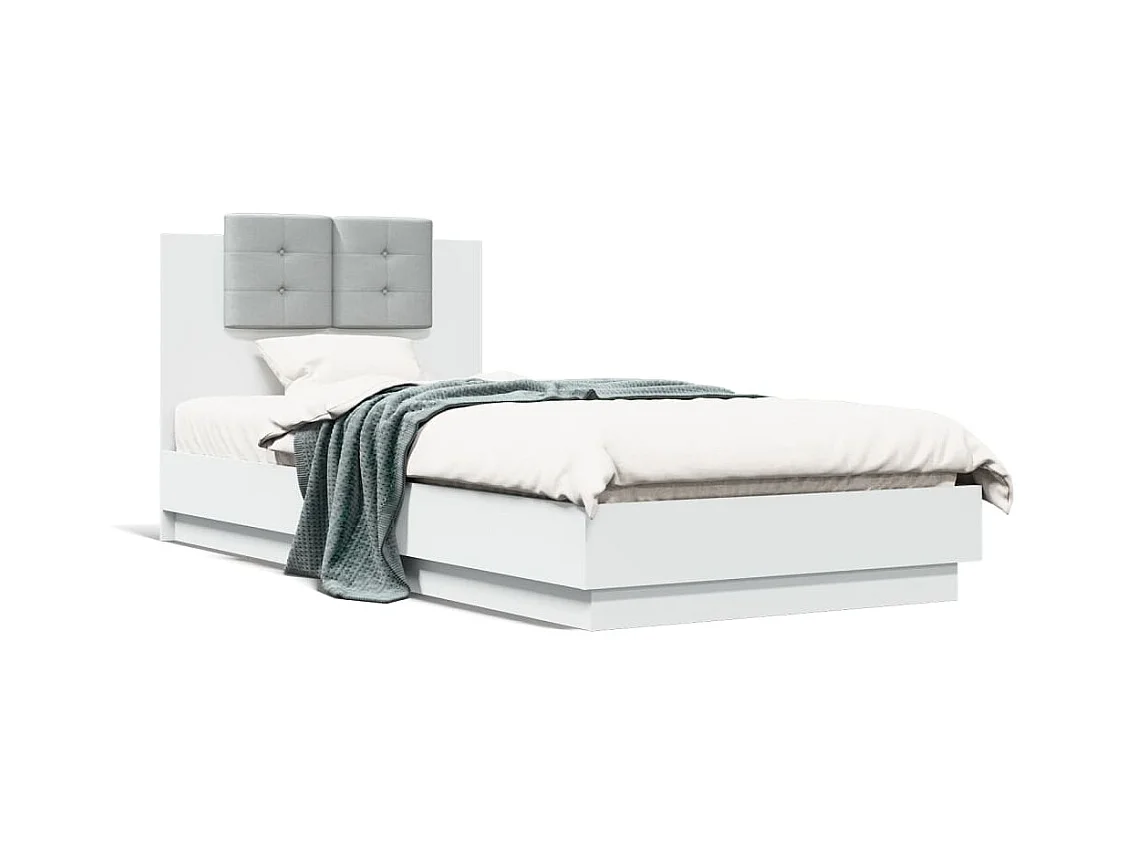 Cadre de lit avec tête de lit blanc 90x200 bois d'ingénierie