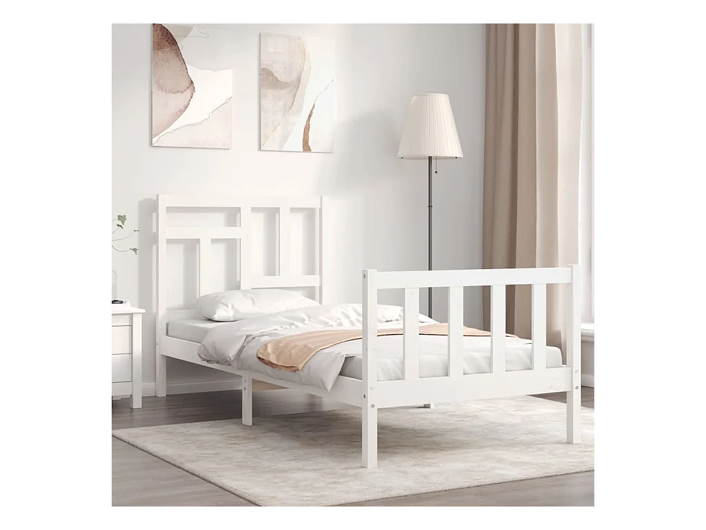 Cadre de lit avec tête de lit blanc 90x200 bois massif