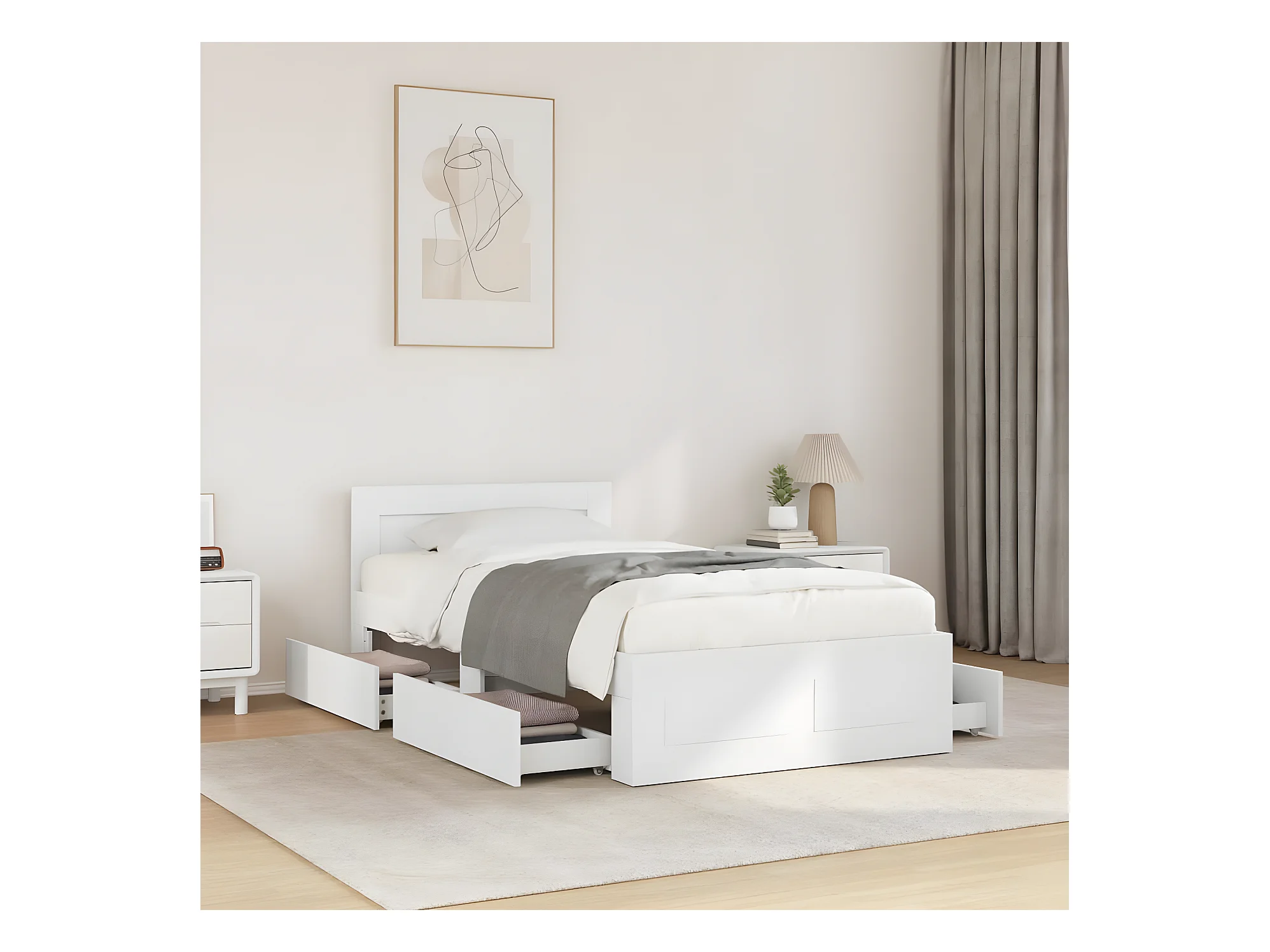 Cadre de lit avec tête de lit blanc 90x200 cm bois d'ingénierie
