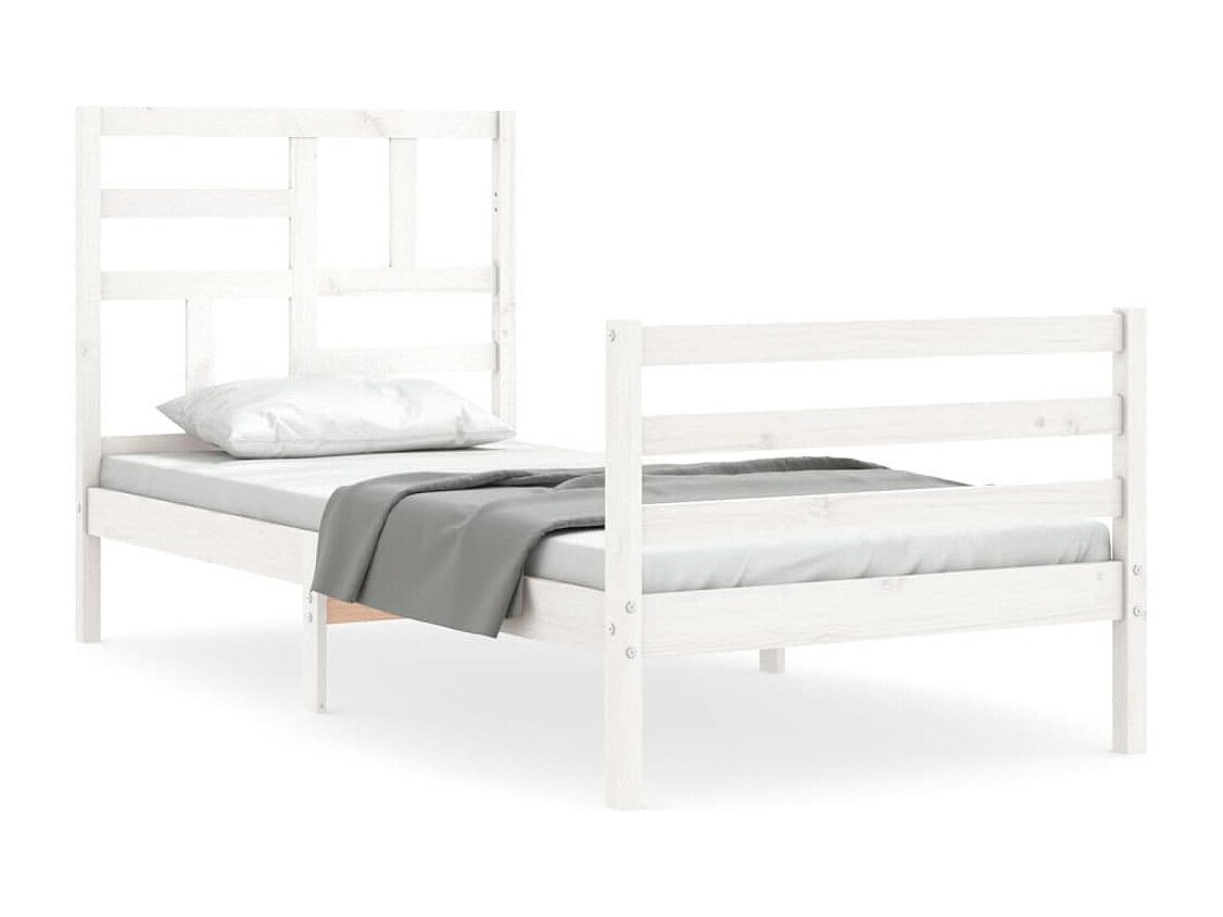 Cadre de lit avec tête de lit blanc 90x200 cm bois massif