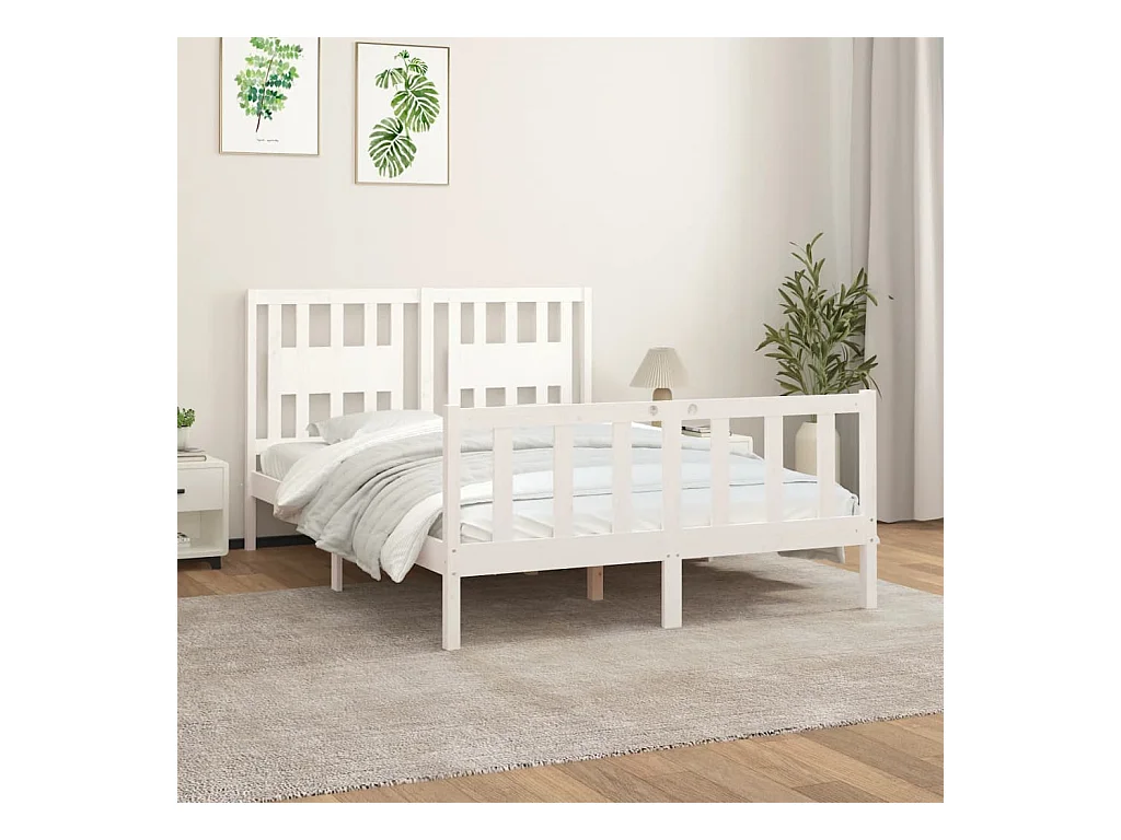 Cadre de lit avec tête de lit blanc bois pin massif 140x200