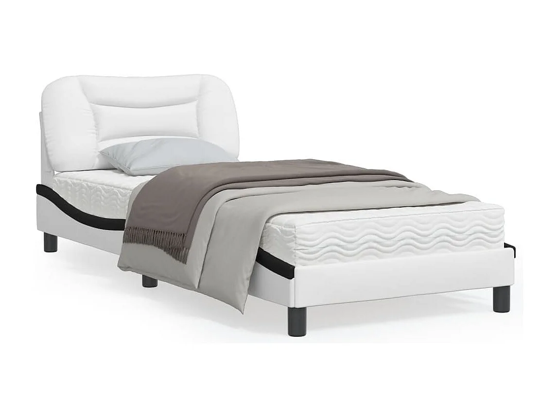 Cadre de lit avec tête de lit blanc et noir 90x190 similicuir