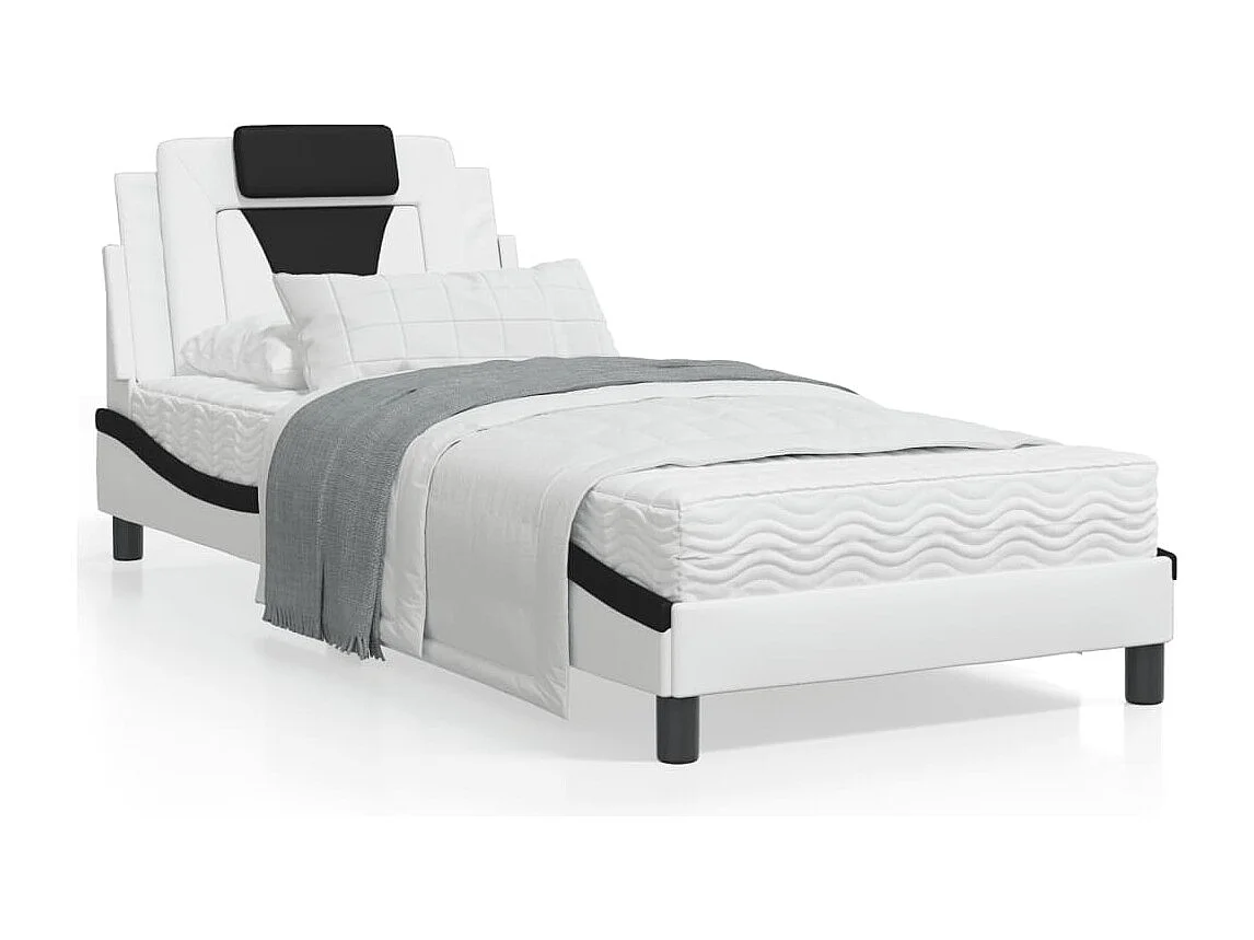 Cadre de lit avec tête de lit blanc et noir 90x200 similicuir