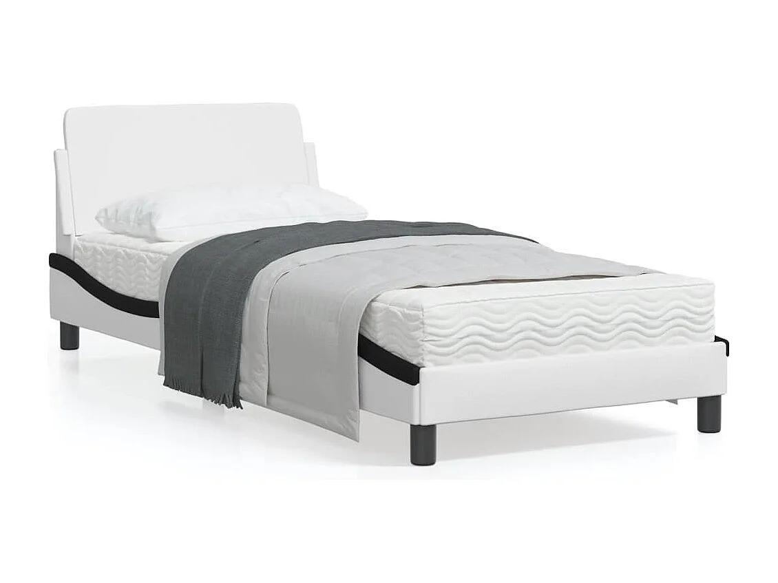 Cadre de lit avec tête de lit blanc et noir 90x200 similicuir
