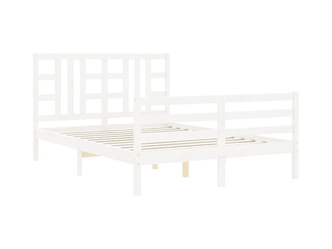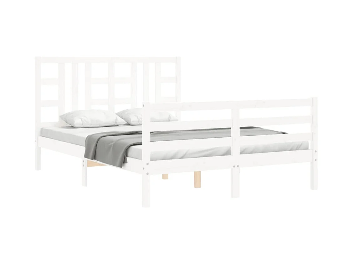 Cadre de lit avec tête de lit blanc King Size bois massif