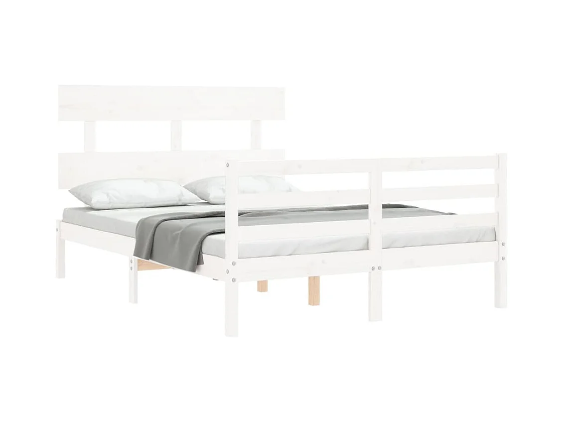 Cadre de lit avec tête de lit blanc petit double bois massif