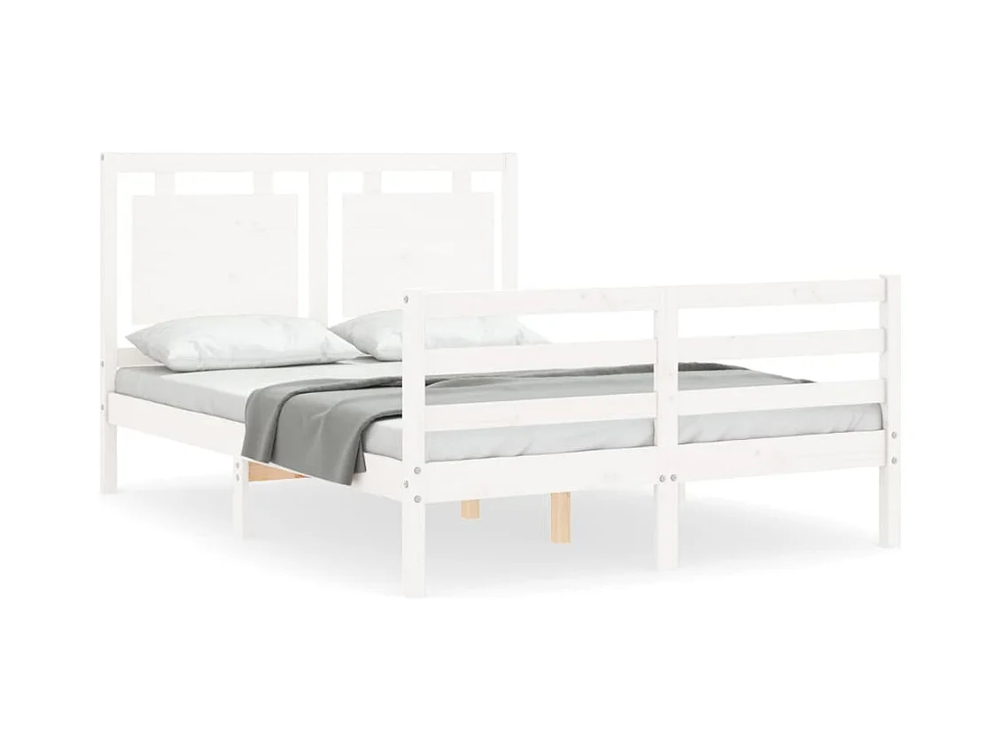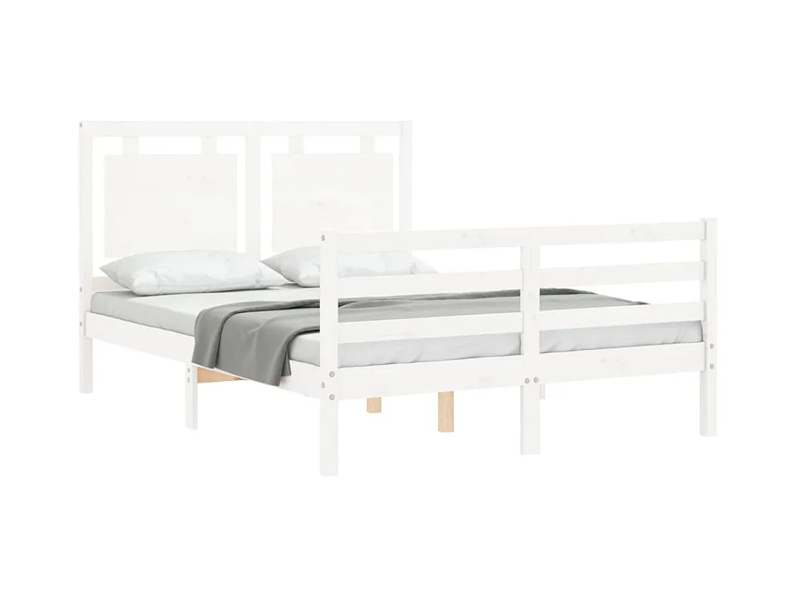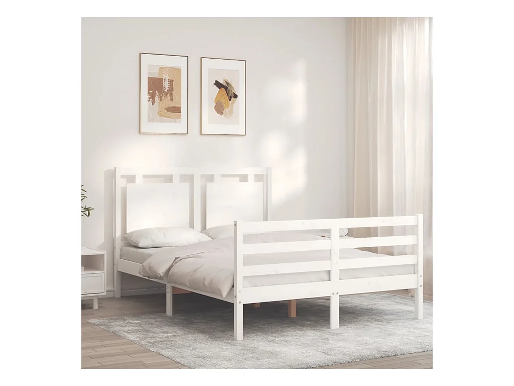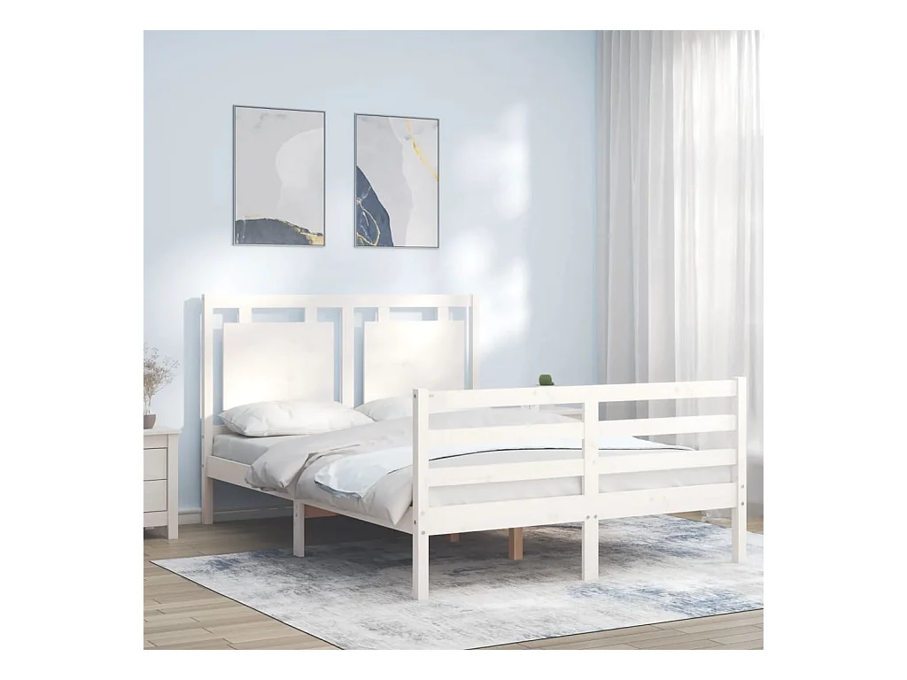 Cadre de lit avec tête de lit blanc petit double bois massif