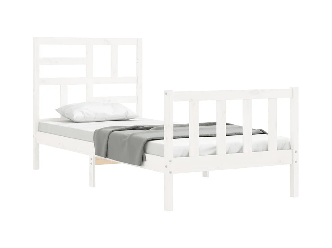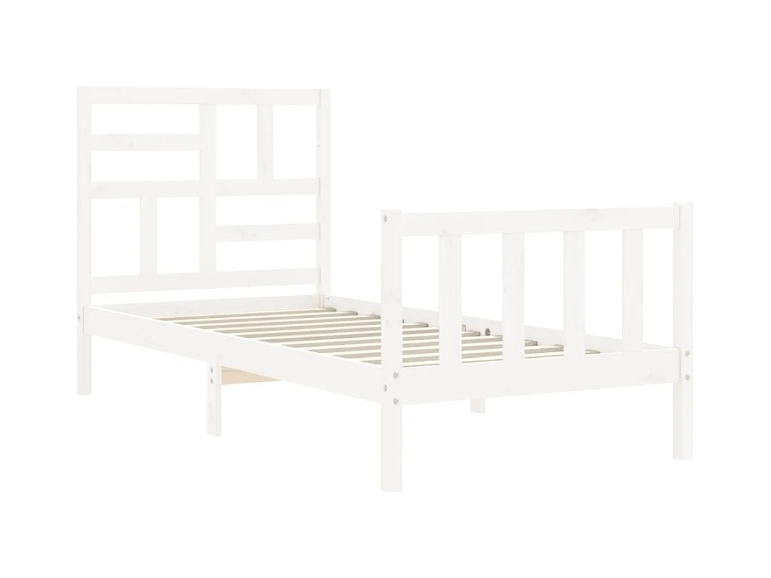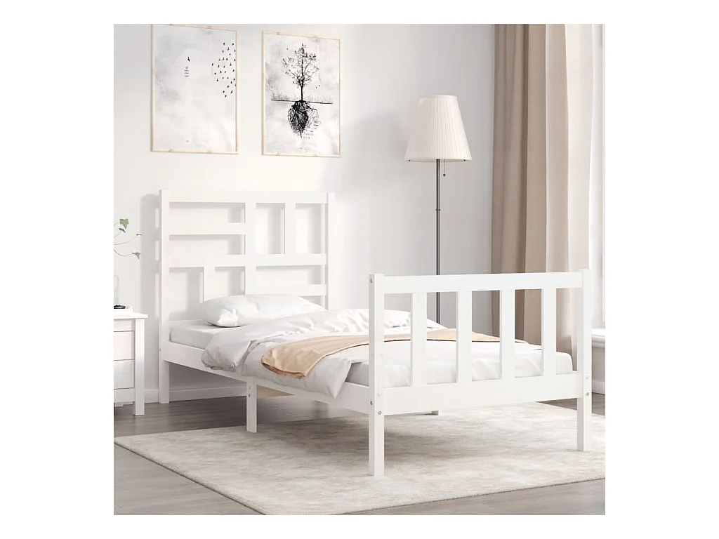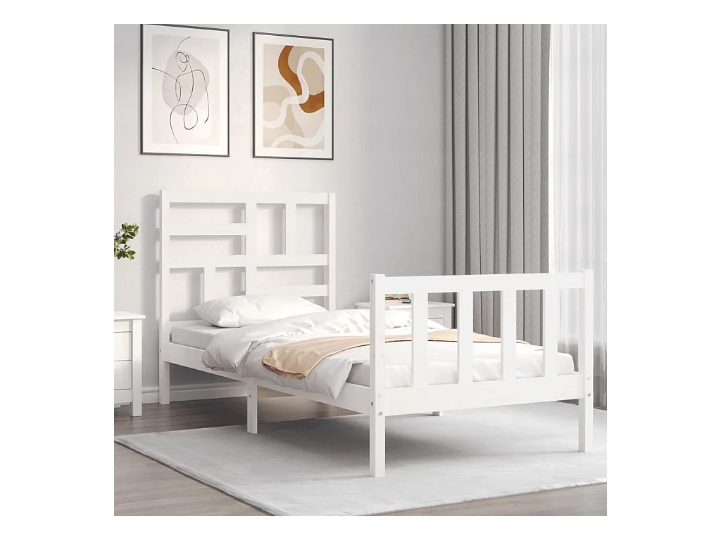 Cadre de lit avec tête de lit blanc petit simple bois massif