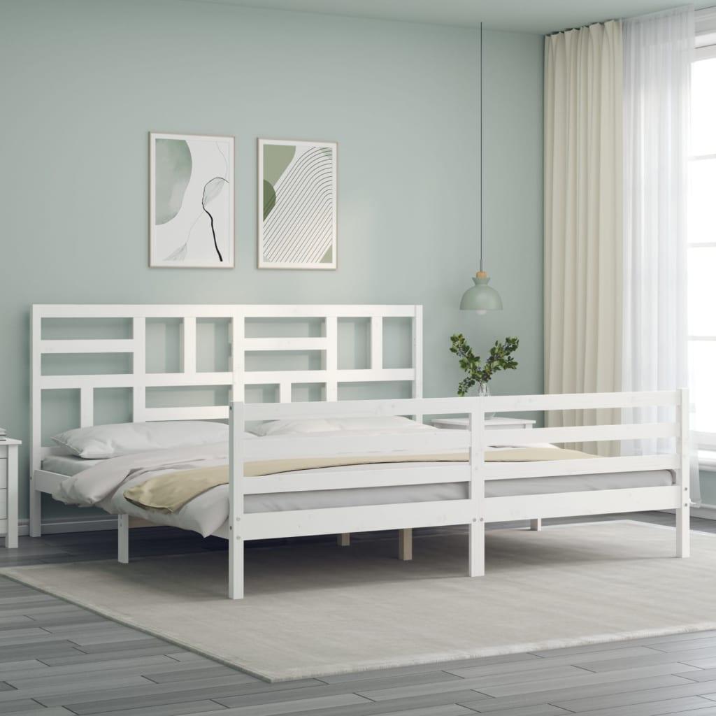 Cadre de lit avec tête de lit blanc Super King Size bois massif
