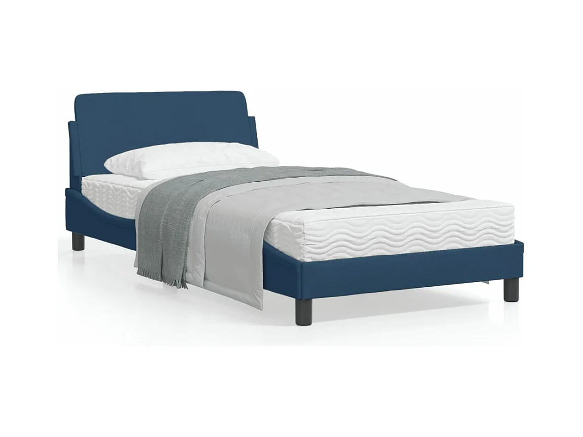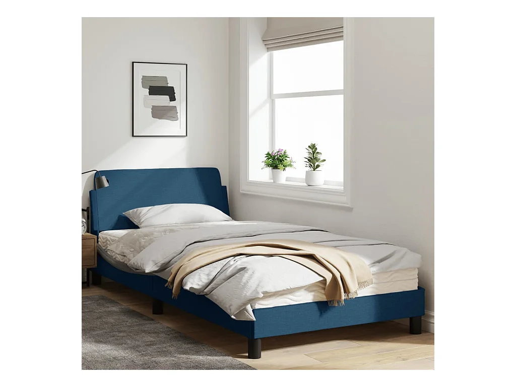 Cadre de lit avec tête de lit Bleu 100x200 Tissu
