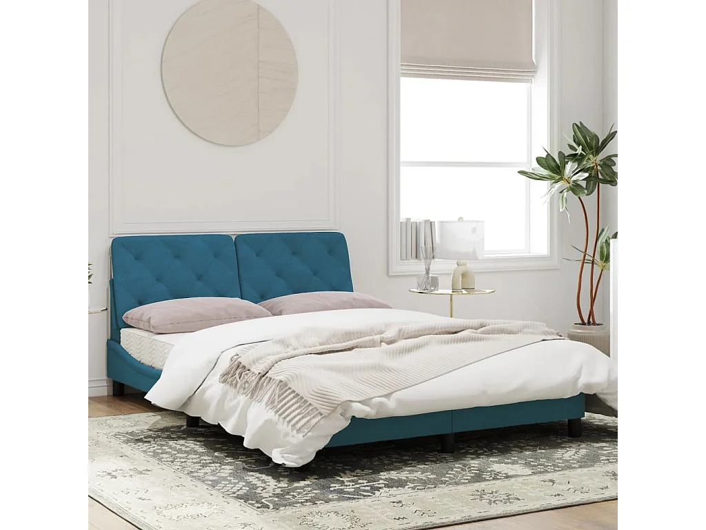 Cadre de lit avec tête de lit bleu 140x190 velours