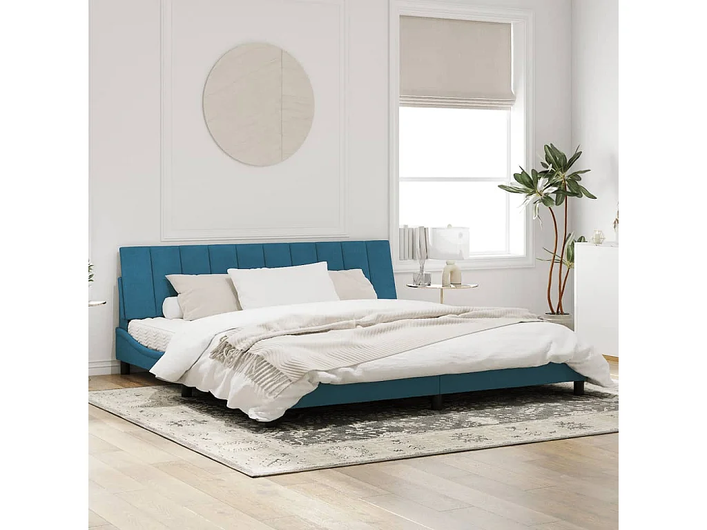 Cadre de lit avec tête de lit bleu 200x200 velours