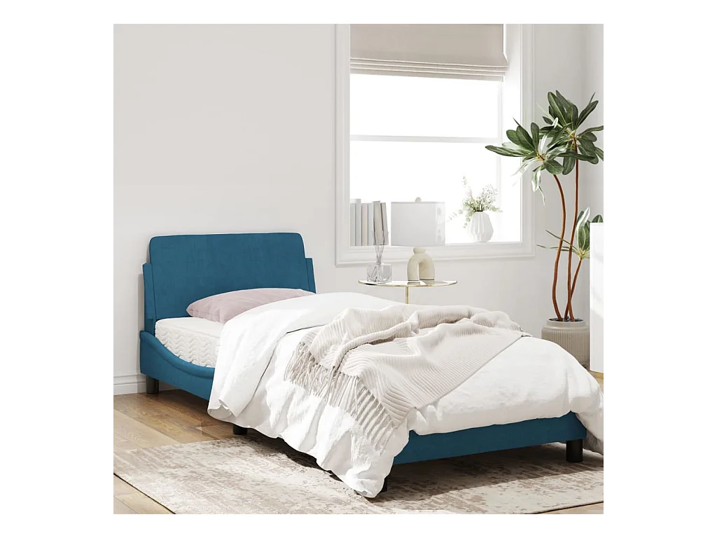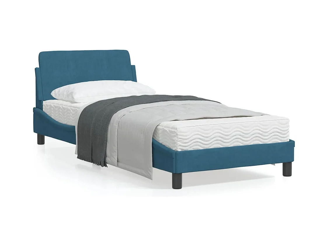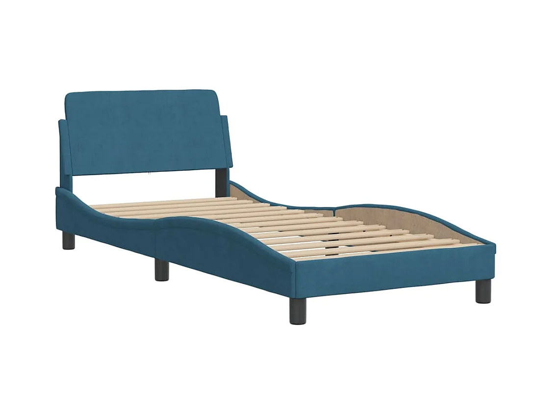 Cadre de lit avec tête de lit bleu 90x200 velours