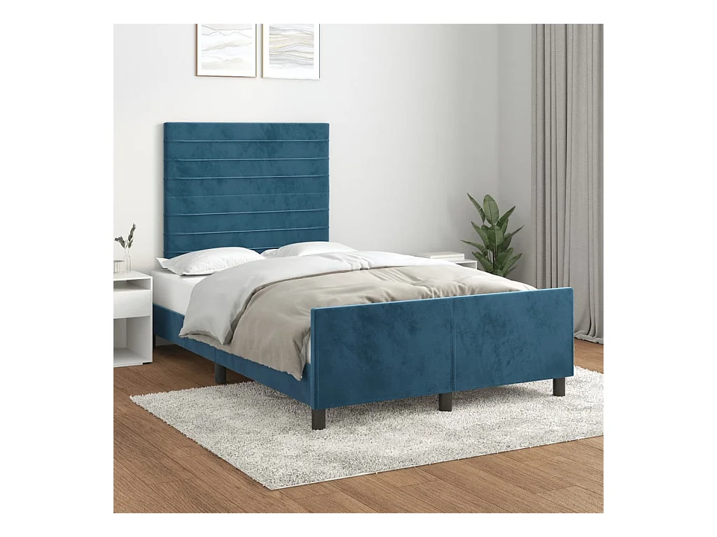 Cadre de lit avec tête de lit bleu foncé 120x190 velours