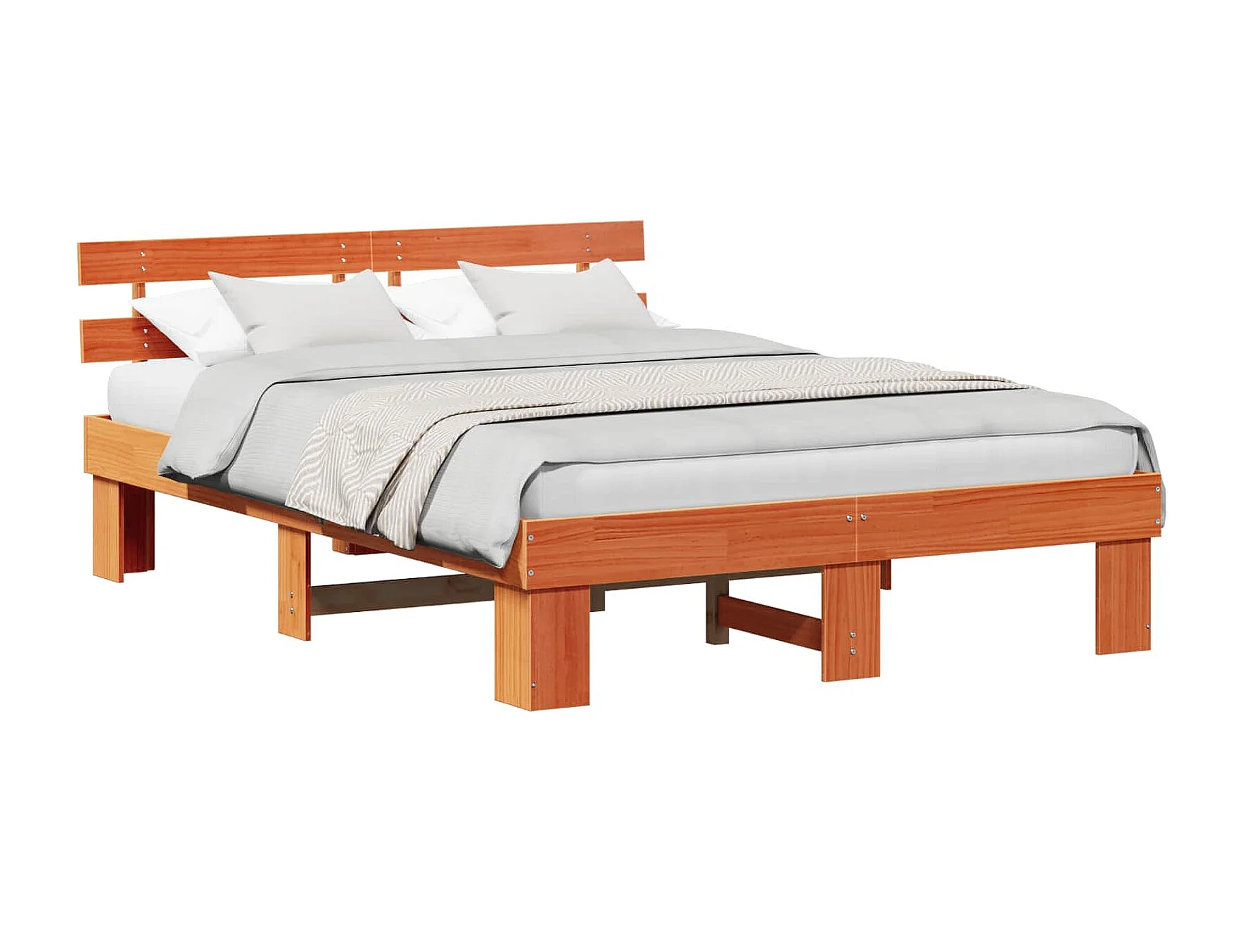 Cadre de lit avec tête de lit Brun cire 140 x 200 cm Pin massif
