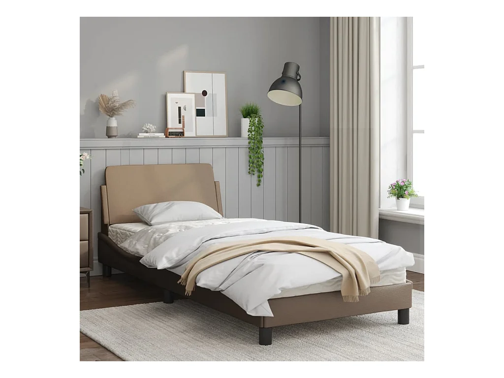 Cadre de lit avec tête de lit Cappuccino 90x200 Similicuir