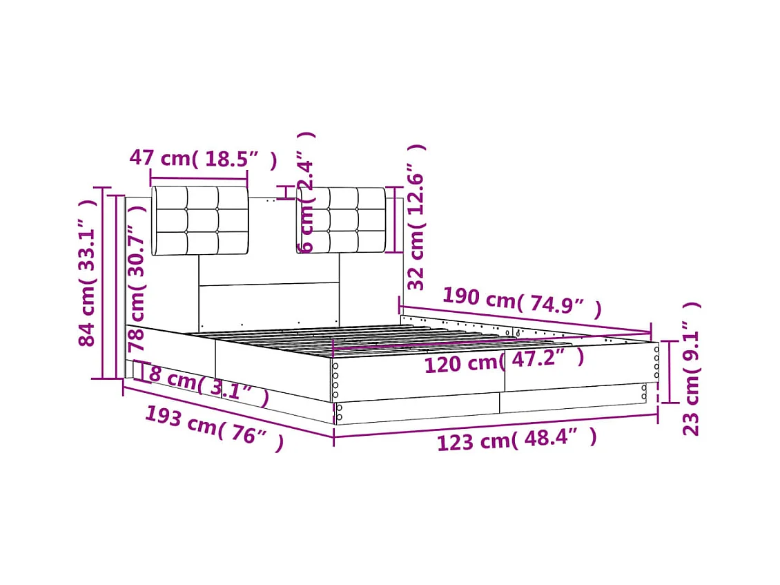 Cadre de lit avec tête de lit chêne sonoma 120x190