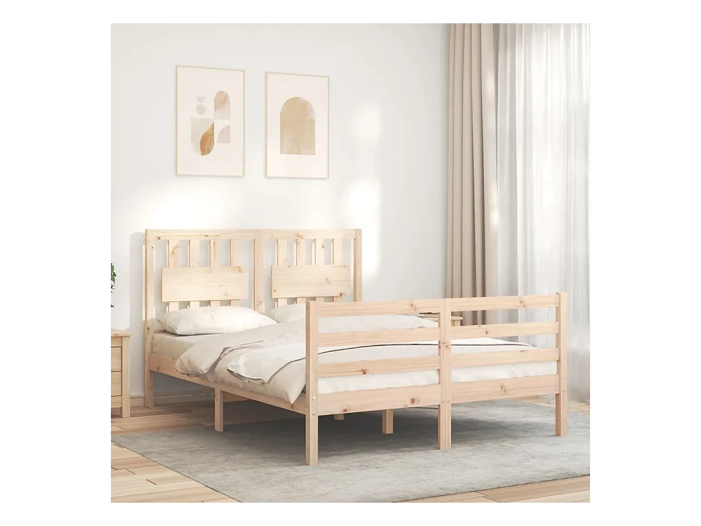 Cadre de lit avec tête de lit double bois massif